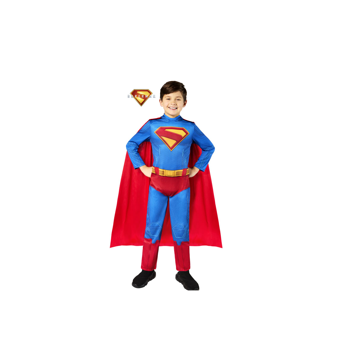 En esta talla, Superman se adapta a los más pequeños con un tejido suave y fácil de llevar, que permite saltar, rodar y correr sin restricciones. El cierre trasero facilita ponerse el traje rápidamente, mientras que la capa es ligera para que no moleste durante el juego. El estampado frontal destaca por sus detalles, creando un efecto visual que hace que el peque se sienta fuerte, valiente y listo para salvar al mundo.