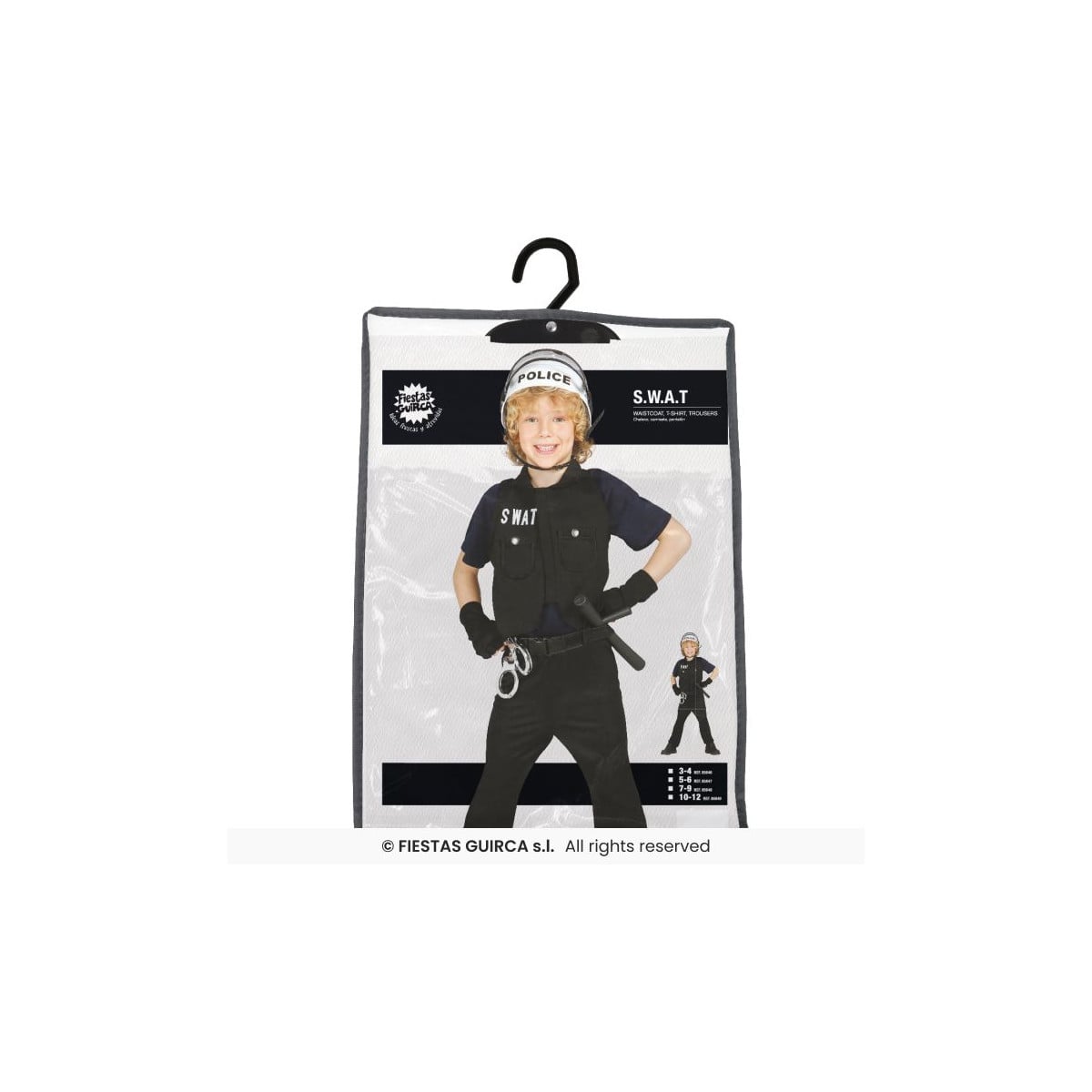Para completar el look, puedes añadir accesorios como unas esposas de juguete, una linterna, unas gafas tácticas o incluso un casco. Con estos complementos, la experiencia de juego será aún más emocionante y realista. Este disfraz es resistente y diseñado para ofrecer comodidad durante horas de diversión. ¡Prepárate para la acción con el mejor equipo SWAT!