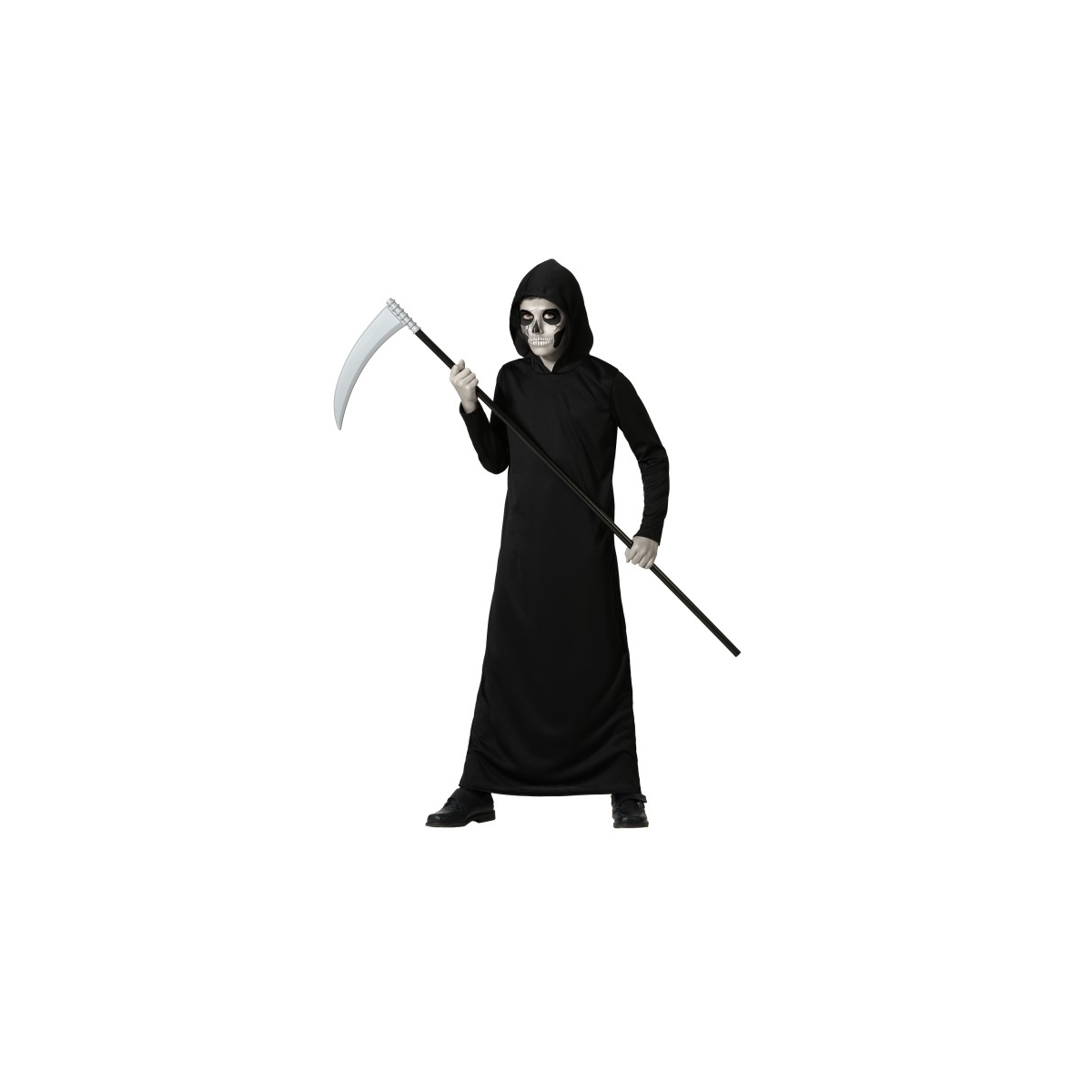 Este disfraz infantil tenebroso para niños y niñas de 3 a 4 años es perfecto para crear un personaje misterioso y oscuro en Halloween, Carnaval o fiestas temáticas. Está compuesto por una túnica negra larga de diseño sencillo y una capucha integrada que aporta un aire inquietante sin resultar incómodo para los más pequeños.