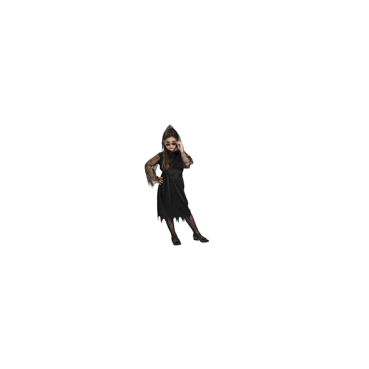 Este disfraz de vampiresa negra con telarañas para niños de 5 a 7 años es una opción ideal para quienes buscan un look misterioso y elegante en Halloween o fiestas de disfraces. Su diseño oscuro y cuidado crea un personaje vampírico llamativo sin perder ese toque infantil que tanto gusta.