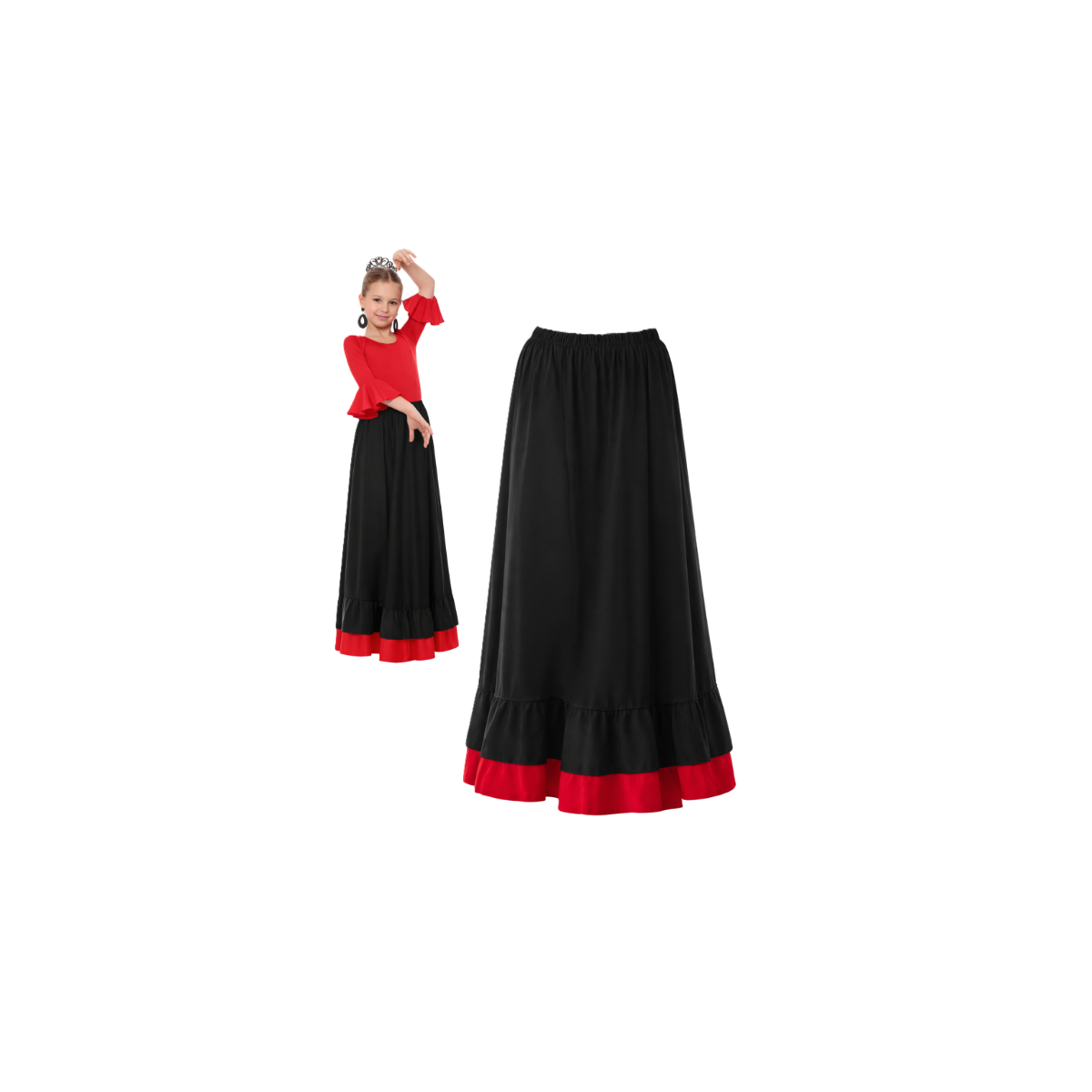 - Incluye: Falda larga con doble volante.