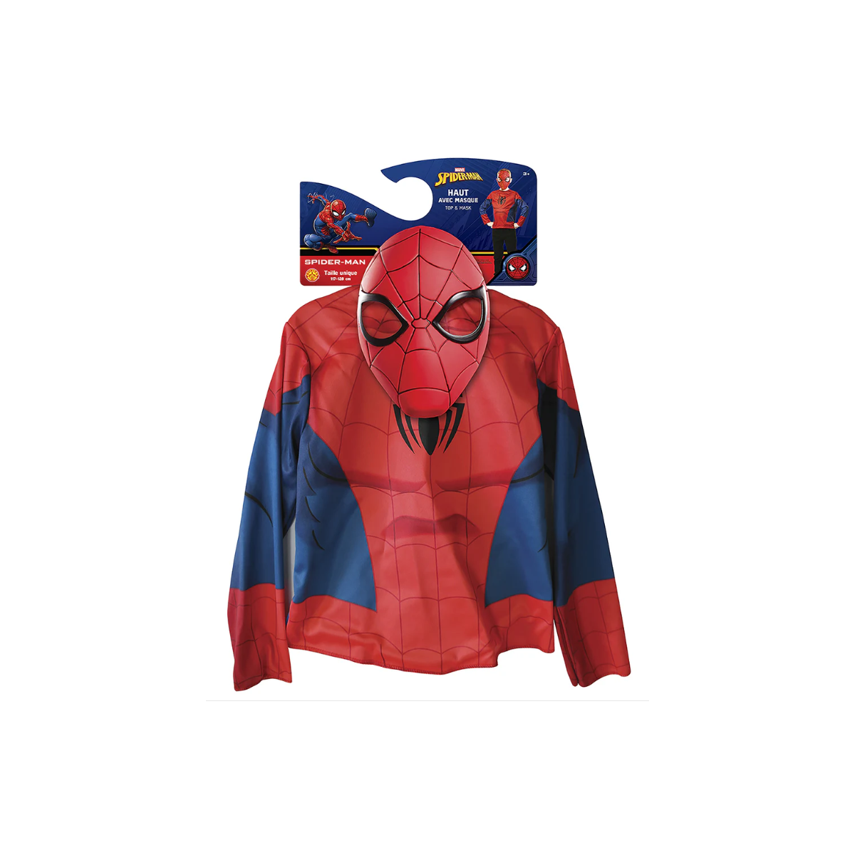 La camiseta reproduce el traje clásico de Spider-Man con gran detalle, mientras que la máscara incluida completa el look y permite una experiencia de juego mucho más divertida. Es una opción cómoda y práctica para quienes quieren disfrazarse sin llevar un traje completo, perfecta para ponerse y quitarse fácilmente.