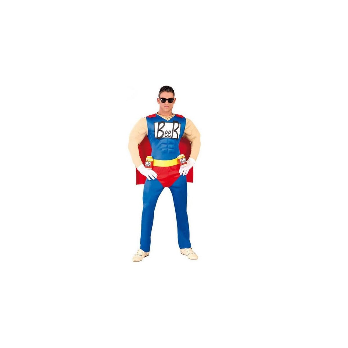 Este disfraz se compone de 1 mono de cuerpo entero con capa y dos cervezas marca Beer.