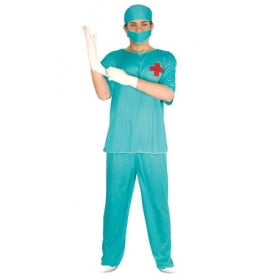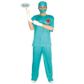 Disfraz de Cirujano Adulto T.L 52-54 de Guirca con conjunto de pijama, gorro y mascarilla.