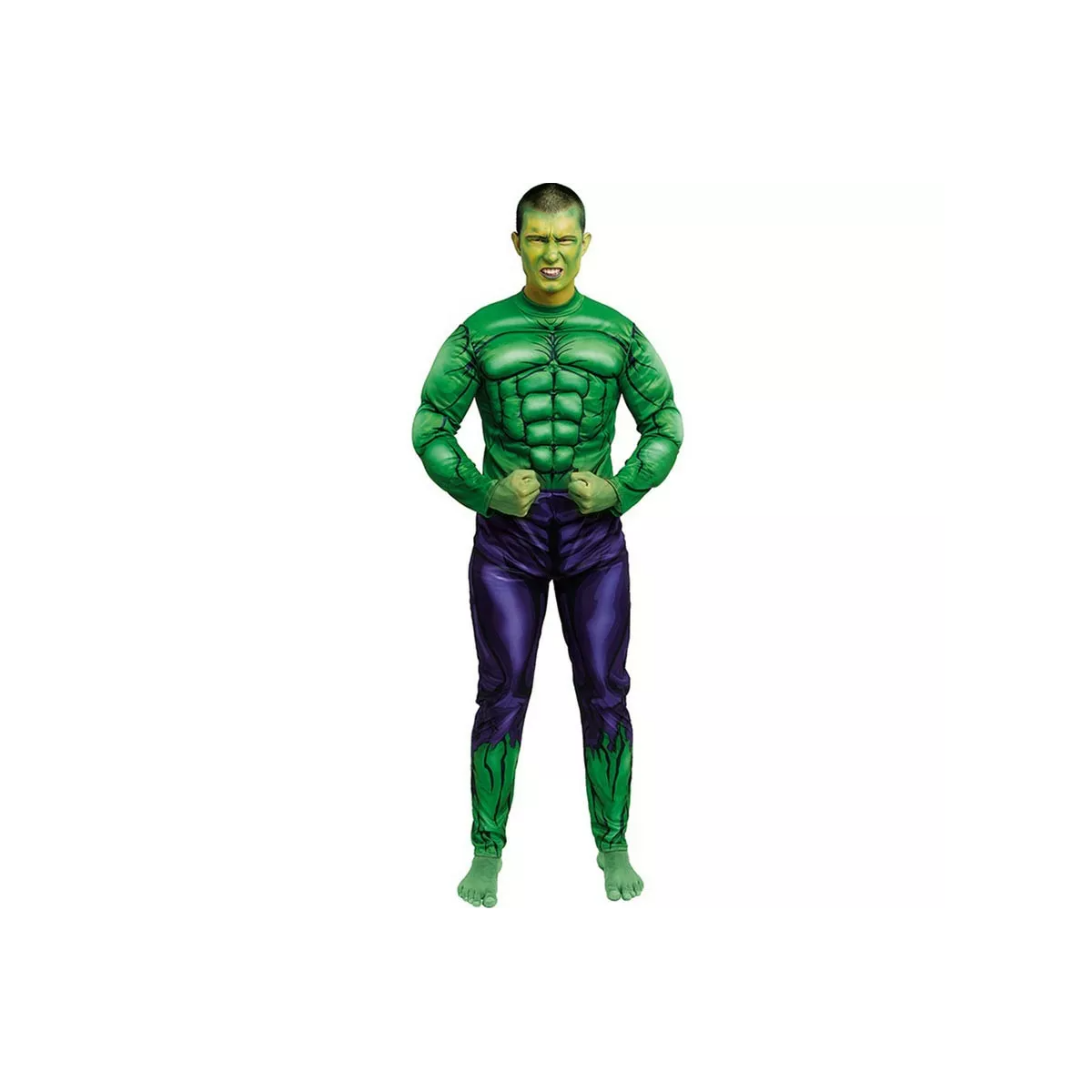 El maillot enterizo con músculos integrados recrea la fuerza descomunal del personaje y permite completar el disfraz con otros accesorios o combinarlo dentro de una temática de superhéroes, cómics o personajes de acción. Es una apuesta segura para Carnaval, fiestas temáticas o celebraciones donde quieras destacar sin complicarte.