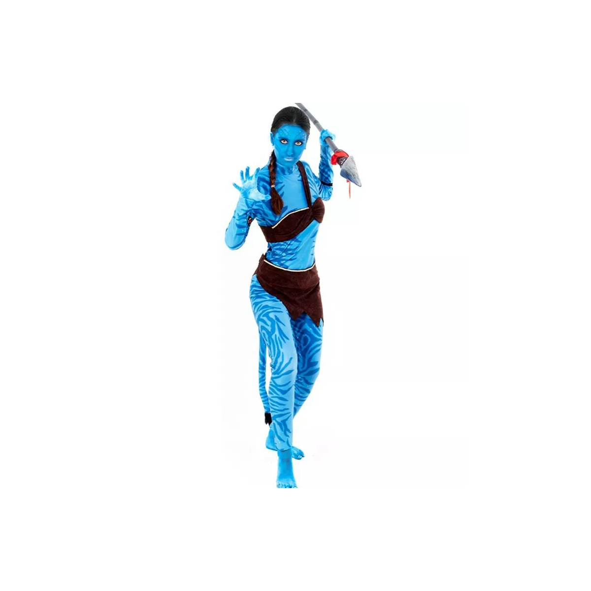 Basado en la estética de los Na’vi, este Disfraz Guerrera Na'vi Avatar recrea el espíritu de un pueblo ficticio que vive en profunda conexión con su entorno natural. Su tonalidad azul y sus detalles tribales evocan selvas infinitas, criaturas extraordinarias y una cultura marcada por el equilibrio entre fuerza y respeto por la naturaleza.