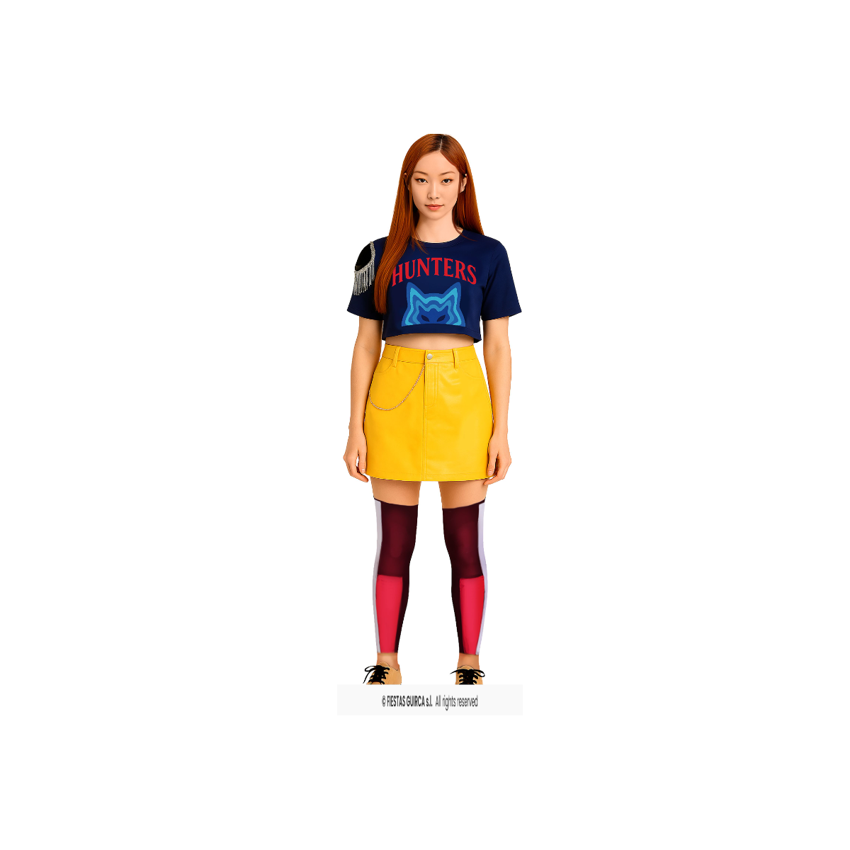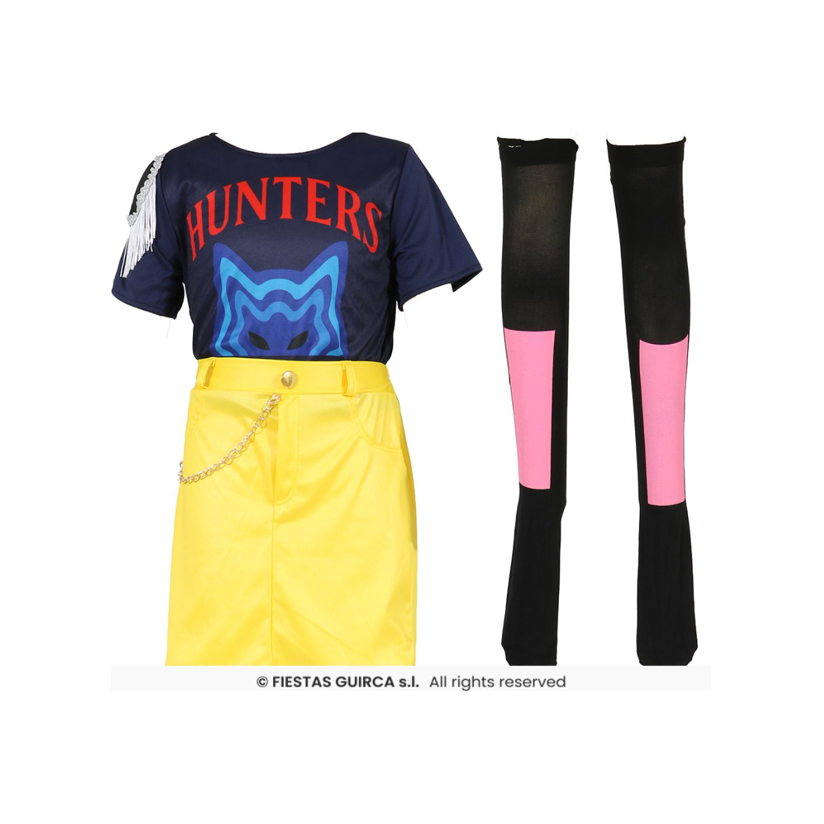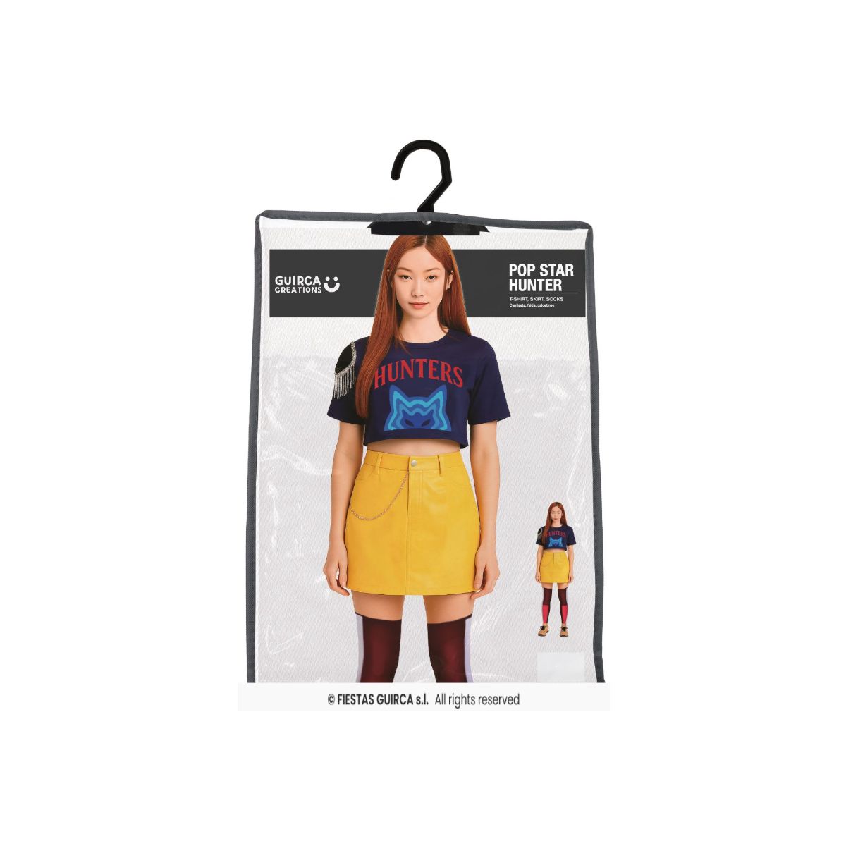 En talla L, este diseño de Guirca reúne falda, camiseta y calcetines en un conjunto que refuerza la personalidad Hunter mediante contrastes potentes y una imagen muy reconocible. Cada elemento del disfraz contribuye a construir una estética urbana y combativa, pensada para destacar en eventos donde el personaje y su historia son protagonistas.