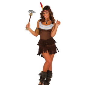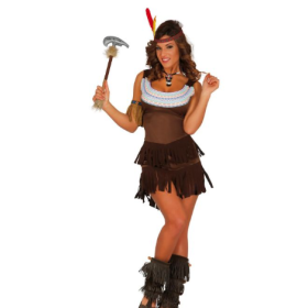Descubre el disfraz de india para adulta. Incluye vestido con flecos y cinta para la cabeza. Ideal para carnaval, Halloween y fiestas temáticas.