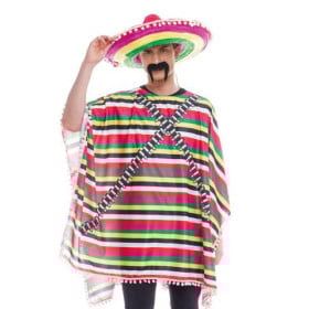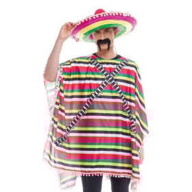El diseño de este disfraz destaca por su patrón de franjas multicolores, típico de los sarapes tradicionales mejicanos, aportando un estilo llamativo y festivo. Ya sea para una fiesta de disfraces, un evento cultural o simplemente para disfrutar de una celebración con amigos, este disfraz es la opción perfecta para destacar con un look lleno de color y autenticidad. Combinado con accesorios como un sombrero o un bigote postizo, este disfraz te permitirá completar un look único y original.
