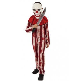 Conviértete en uno con este Disfraz de Payaso Tarado para adulto que incluye un mono de cuerpo entero con rayas blancas y rojas, todo él salpicado con manchas de sangre falsa.