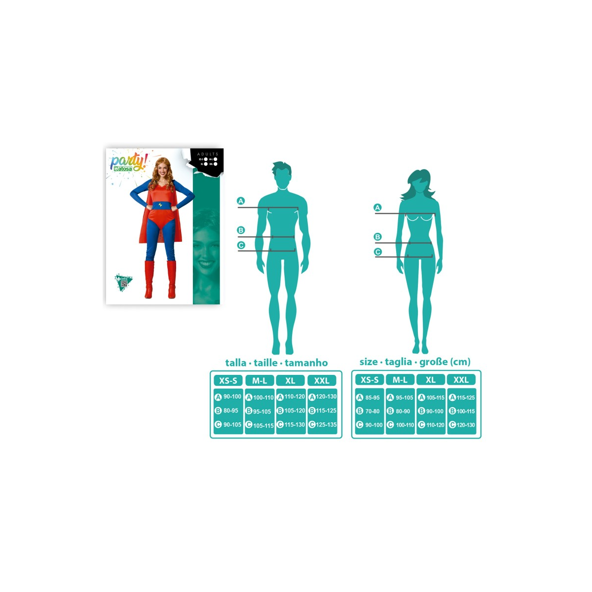 En la talla XL, el conjunto mantiene una caída cómoda y favorecedora que permite disfrutar del evento sin restricciones. La temática de superheroína encaja perfectamente en fiestas de Carnaval, celebraciones temáticas o eventos de cultura pop donde la fantasía y la aventura son protagonistas.