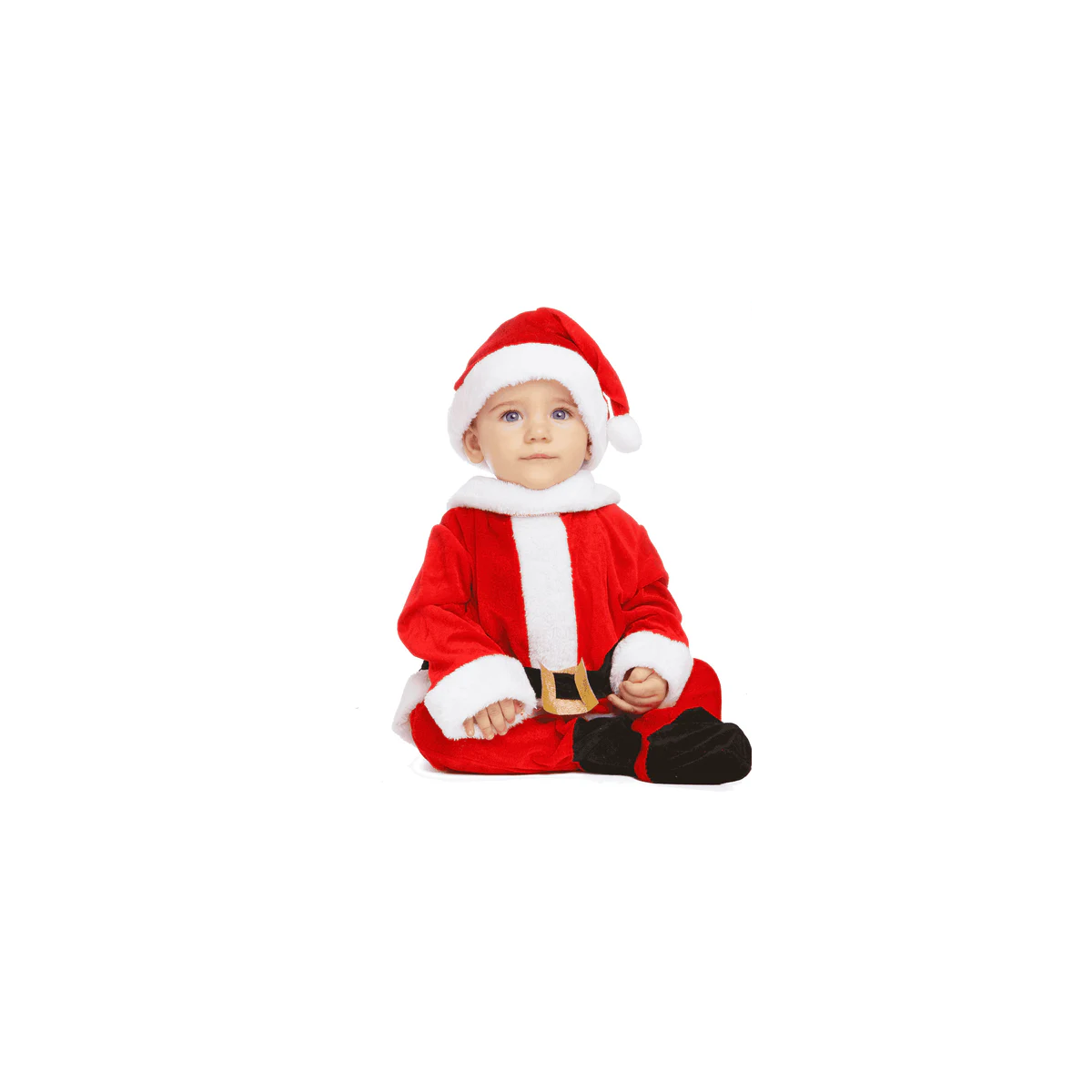 El conjunto reproduce el tradicional traje de Papá Noel en color rojo con detalles blancos, cuidando cada acabado para lograr un look reconocible y muy tierno. El tejido es suave al tacto y está pensado para ofrecer comodidad al bebé durante su uso, permitiendo moverse con total libertad.