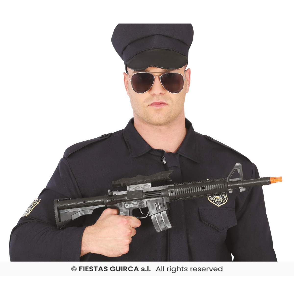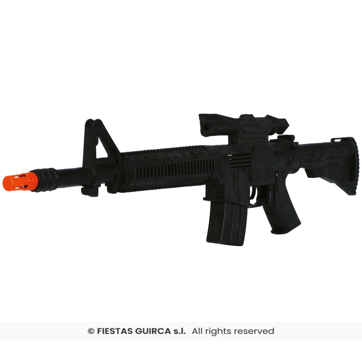 Este Fusil Con Mirilla es el complemento perfecto para quienes buscan dar vida a personajes de acción, agentes secretos o figuras de autoridad en sus juegos de rol y celebraciones temáticas. Con una longitud de 58 cm y un diseño estilizado, este accesorio añade realismo sin perder de vista la seguridad y el carácter lúdico. Su acabado en tonos oscuros, junto con detalles como la mirilla y el cañón de color naranja, lo convierten en una pieza llamativa para completar cualquier atuendo.