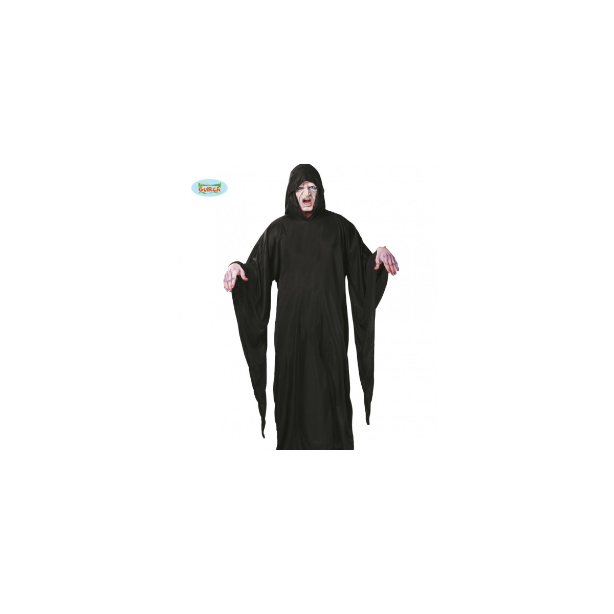 Conviértete en la figura más misteriosa de la noche con esta túnica negra con capucha, ideal para tus fiestas temáticas y celebraciones oscuras.