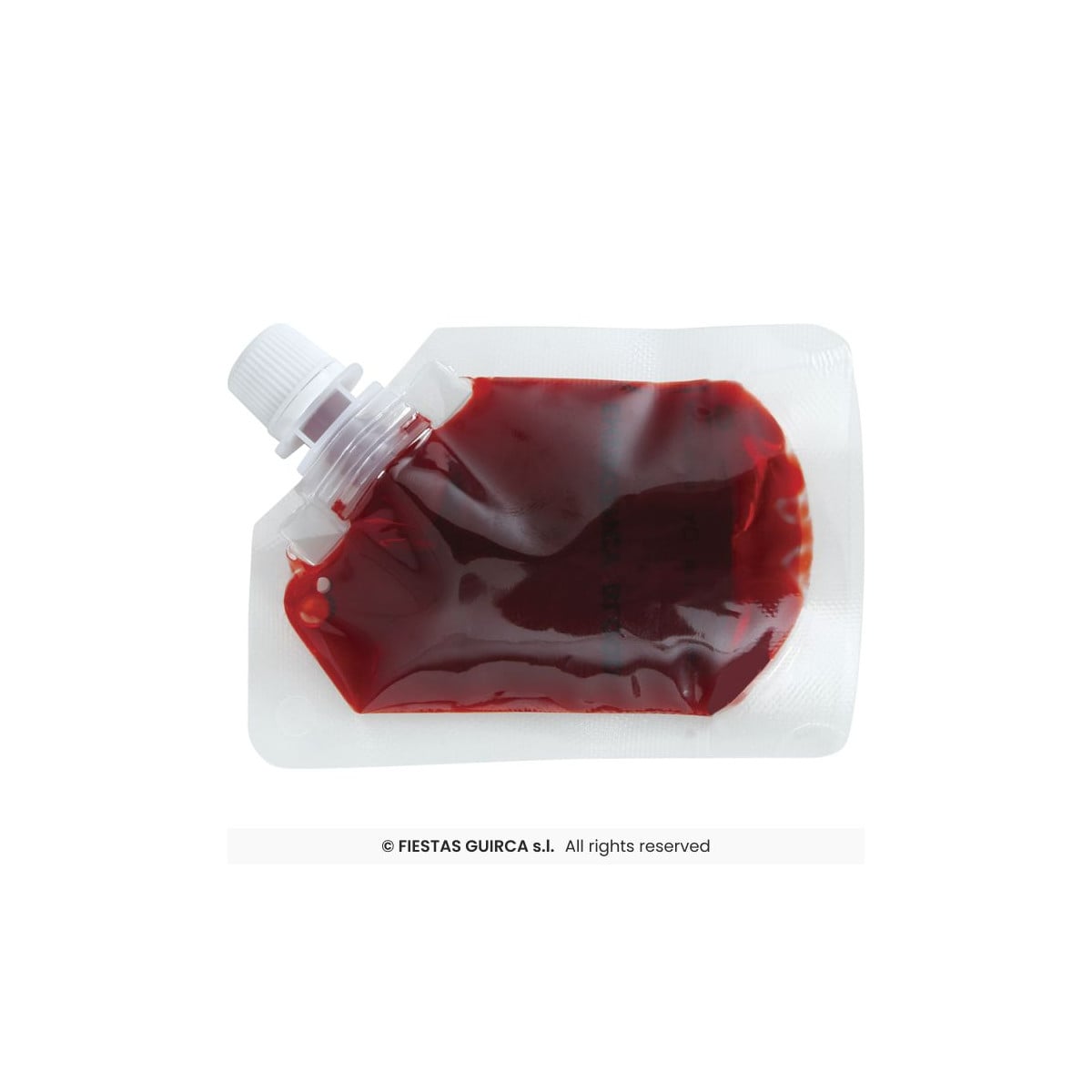 Dale un toque impactante a tu disfraz con esta bolsa de sangre falsa, el accesorio perfecto para lograr un efecto realista y aterrador este Halloween.