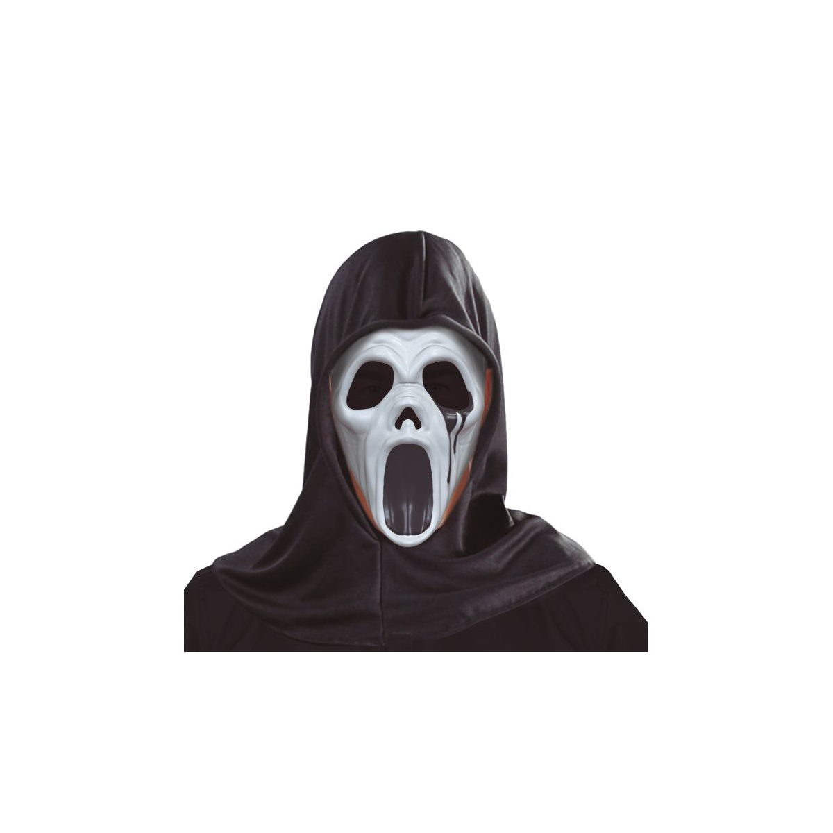 Prepara tu disfraz más escalofriante con esta máscara asesino con capucha de PVC, un clásico indispensable para cualquier amante del terror. Su diseño blanco con boca abierta y lágrima negra recrea una expresión de miedo que resulta tan reconocible como perturbadora, perfecta para Halloween o fiestas temáticas.