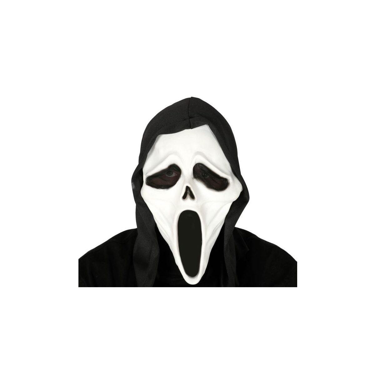 La máscara El Grito con capucha es un clásico imprescindible para Halloween y fiestas de terror. Inspirada en uno de los personajes más icónicos del cine de miedo, esta máscara blanca con rasgos alargados y expresión de pavor garantiza un efecto impactante y reconocible al instante.