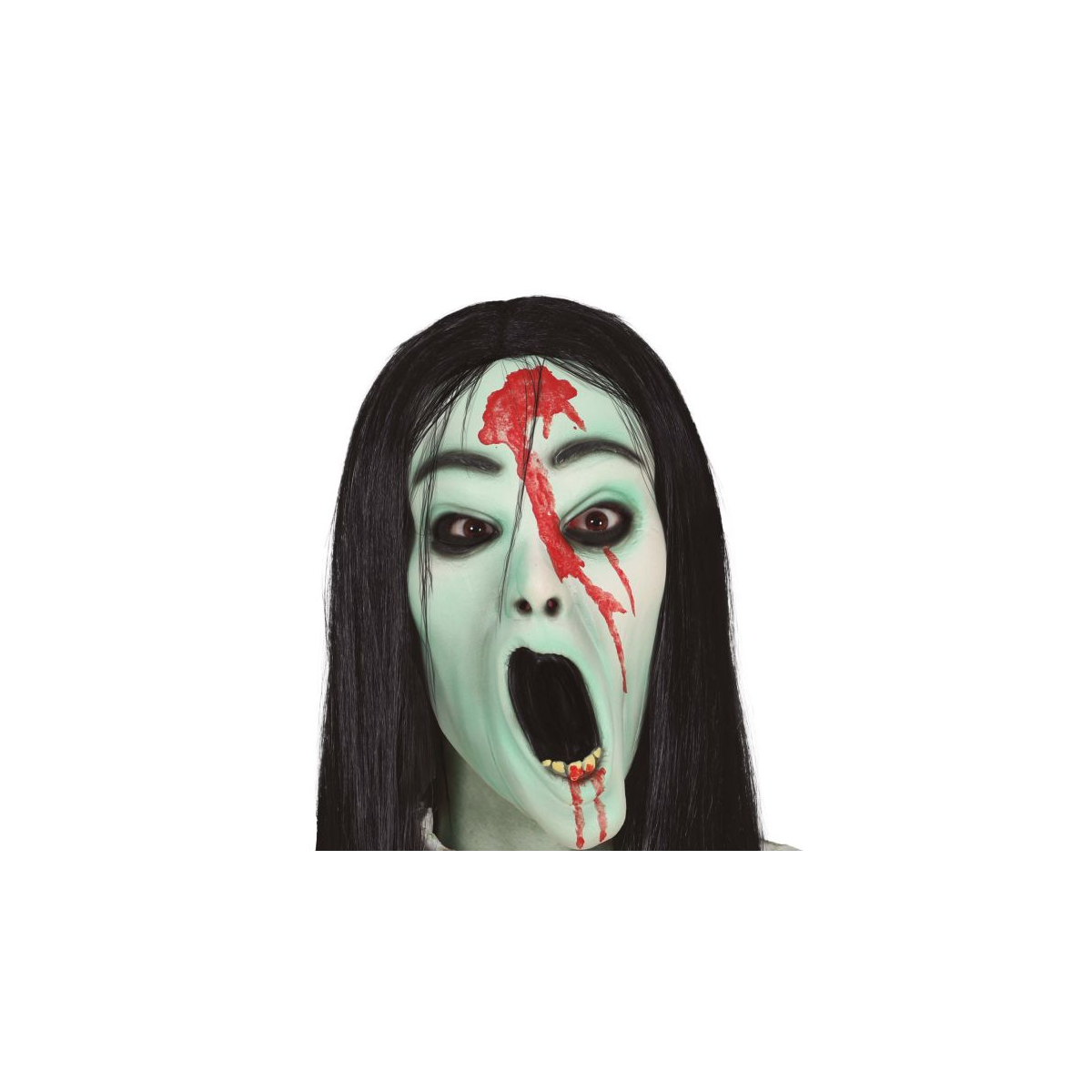 Descubre la Máscara Niña Fantasma con Pelo Látex y conviértete en la protagonista más aterradora de la noche. Un clásico del terror imposible de olvidar.