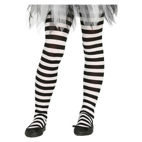 Pantys a rayas blancas para niñas en talla 7-12 años, perfectas para disfraces de Halloween. Calidad y confort garantizados.