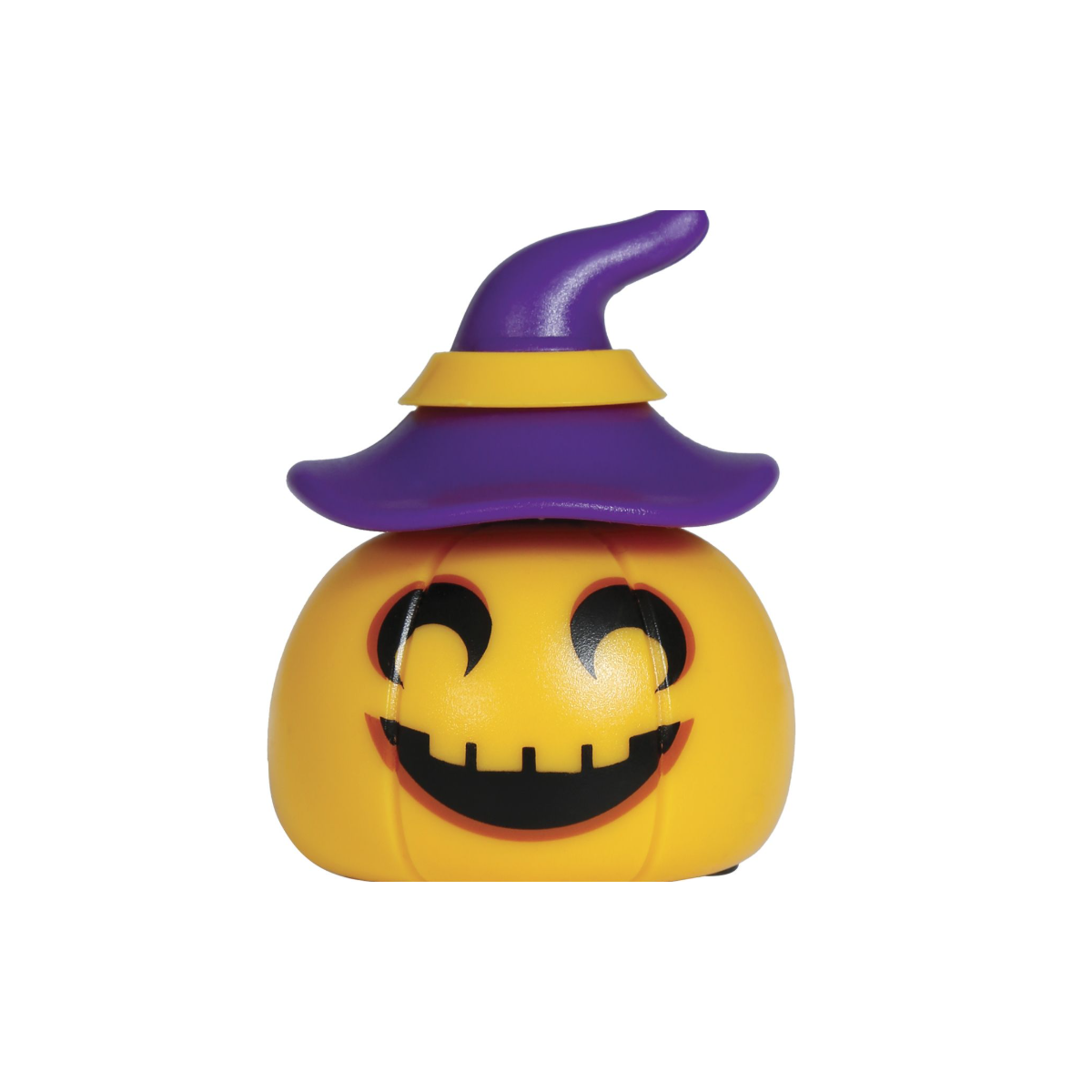 Descubre la Calabaza Con Ruedas 6 Cm Surtida; divertida, ligera y con sombrero de bruja. Perfecta para decoración, juegos o detalles en fiestas de Halloween.