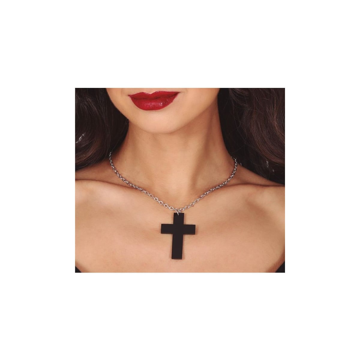 Collar con colgante de cruz negra de 6 cm. Un accesorio elegante, ligero y fácil de combinar, perfecto para disfraces de Halloween y fiestas temáticas.