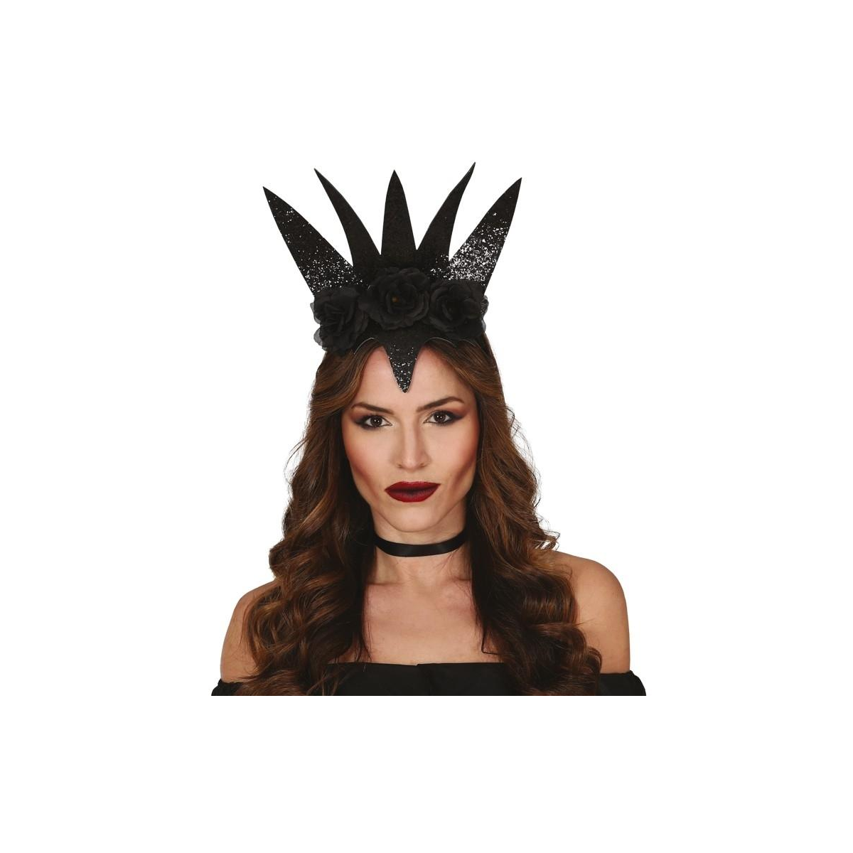 Resalta tu estilo con la diadema negra Reina, adornada con elegantes flores. Perfecta para un toque sofisticado y malvado en cualquier ocasión.