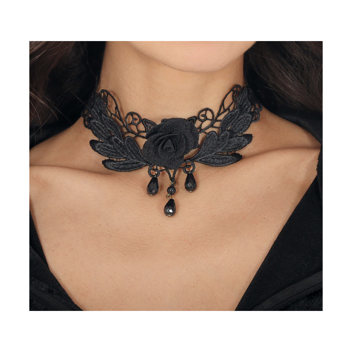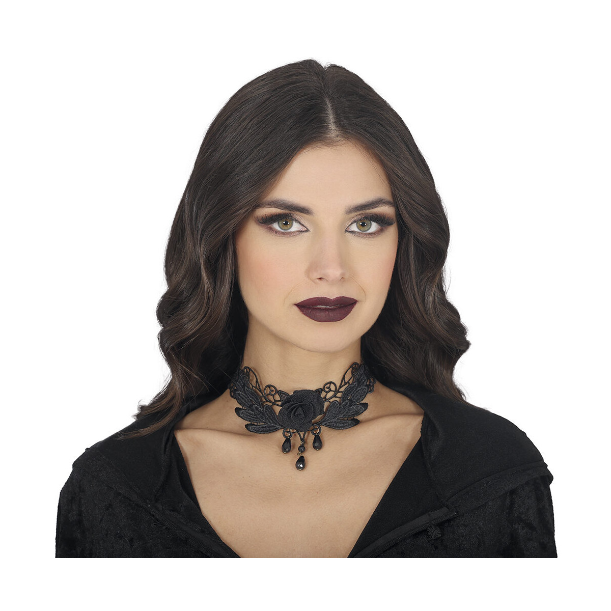 Es perfecta para completar disfraces de vampira, condesa o dama victoriana, aunque también puede lucirse en ocasiones especiales en las que quieras aportar un aire alternativo y llamativo a tu estilo. El contraste del bordado con la flor negra central crea un efecto teatral que no pasa desapercibido, convirtiendo a esta gargantilla en un detalle clave de tu conjunto.