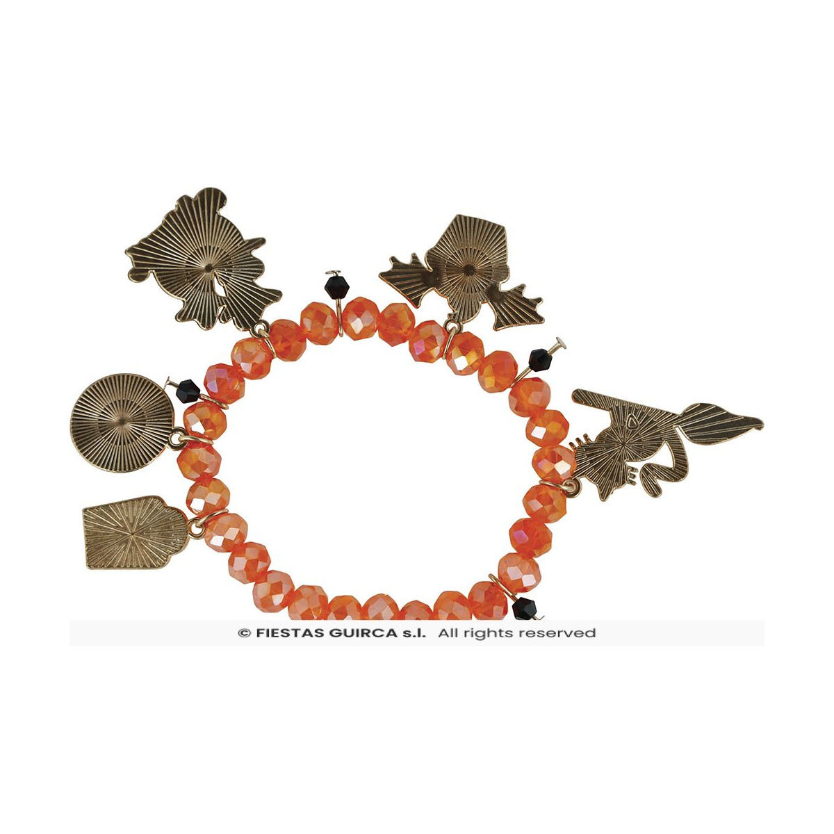 La pulsera con figuras naranja Halloween es el accesorio perfecto para dar un toque divertido y temático a cualquier look durante la noche más mágica del año. Su diseño lleno de detalles convierte este complemento en un imprescindible para quienes disfrutan de celebrar Halloween con estilo. Fabricada con cuentas de un llamativo color naranja brillante, esta pulsera destaca por su alegre acabado y por los pequeños colgantes decorativos que la hacen única.