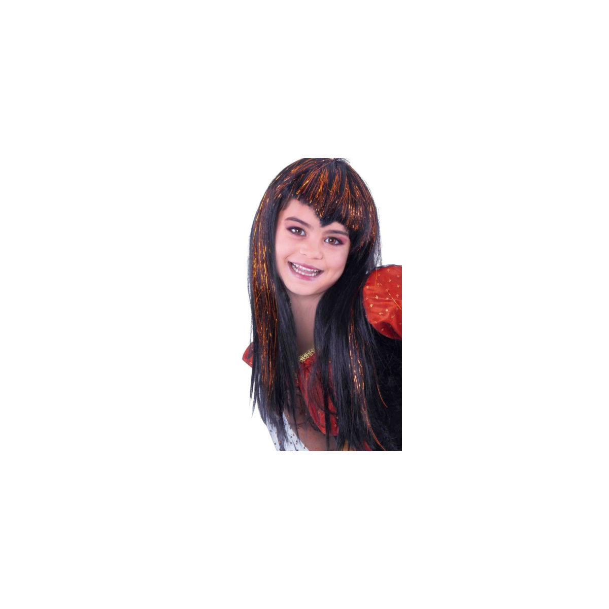 Peluca Vampiresa Traviesa Negra/Naranja Infantil