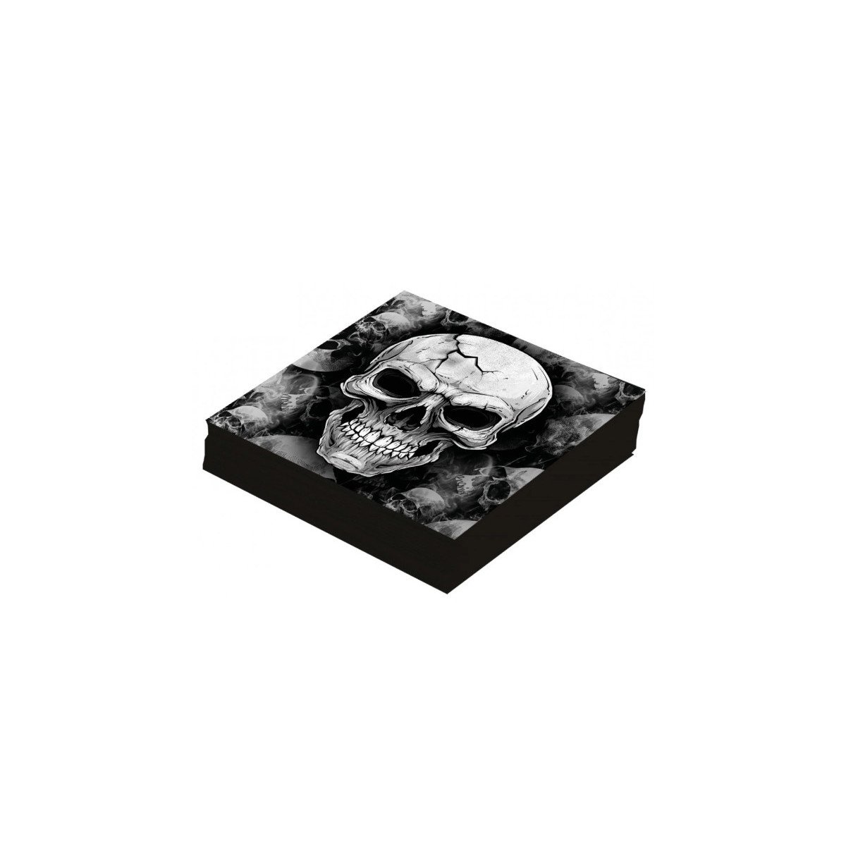 12 Servilletas Calavera, tamaño 33 × 33 cm. Perfectas para complementar tu mesa de Halloween con estilo terrorífico.