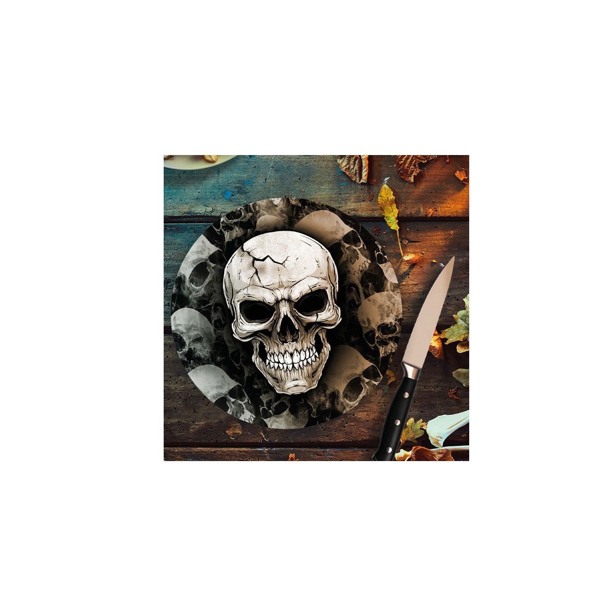 6 Platos Calavera 23 Cm con ilustraciones de calaveras perfectos para ambientar tus fiestas de Halloween u otras celebraciones terroríficas.