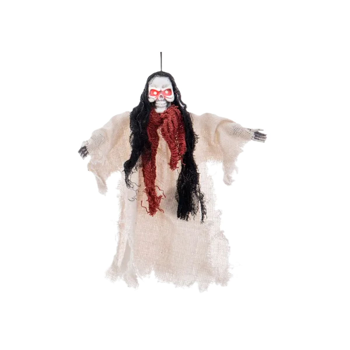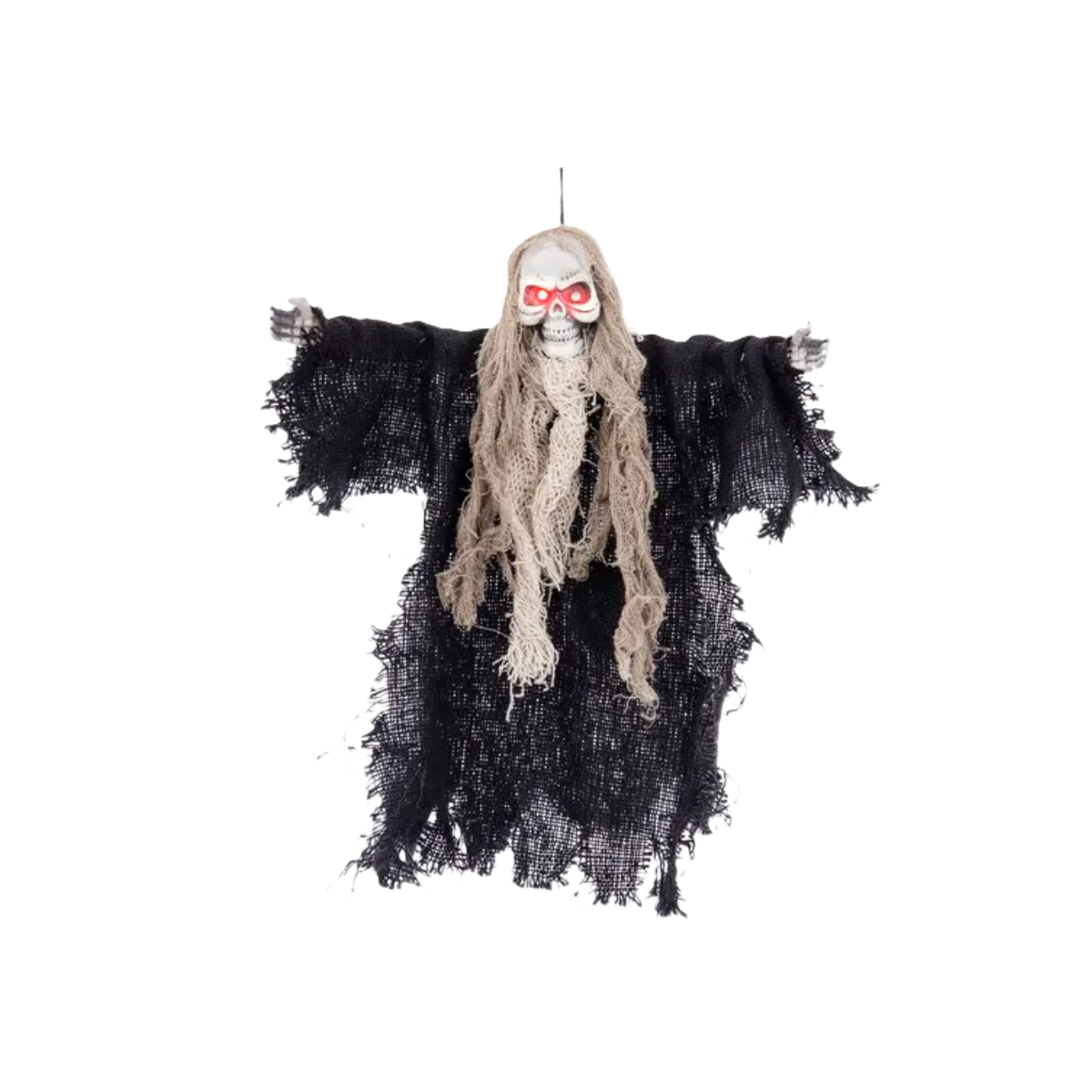 - Diseño y estilo: Calavera colgante con luces y sonido.