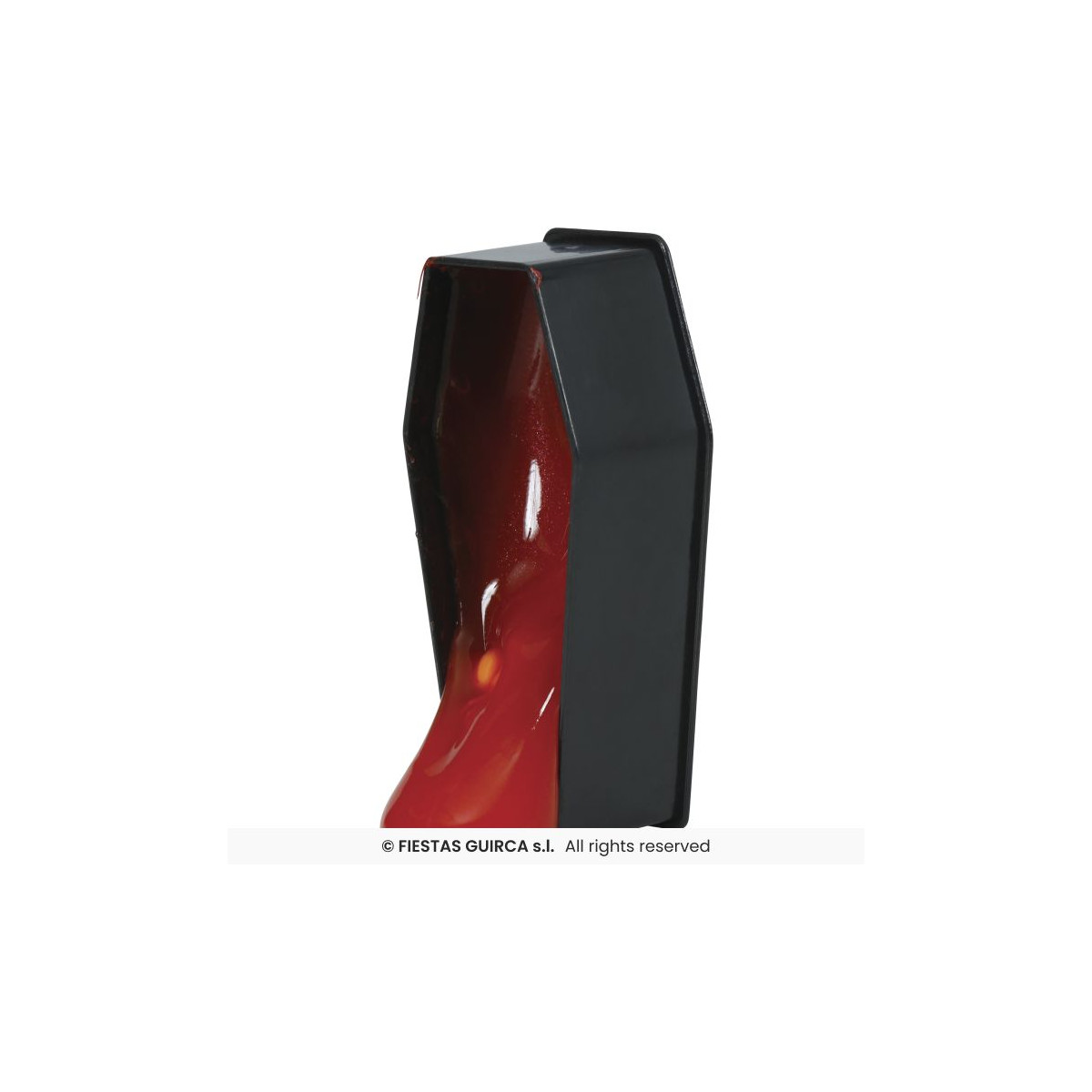 Su tamaño compacto de 7x3 cm lo convierte en un accesorio perfecto para repartir como detalle en fiestas, incluir en bolsas de regalo, usar como decoración en mesas temáticas o simplemente sorprender a tus invitados con un elemento inesperado y llamativo. El contraste entre el diseño sobrio del féretro y la textura viscosa del gel lo hacen aún más impactante.
