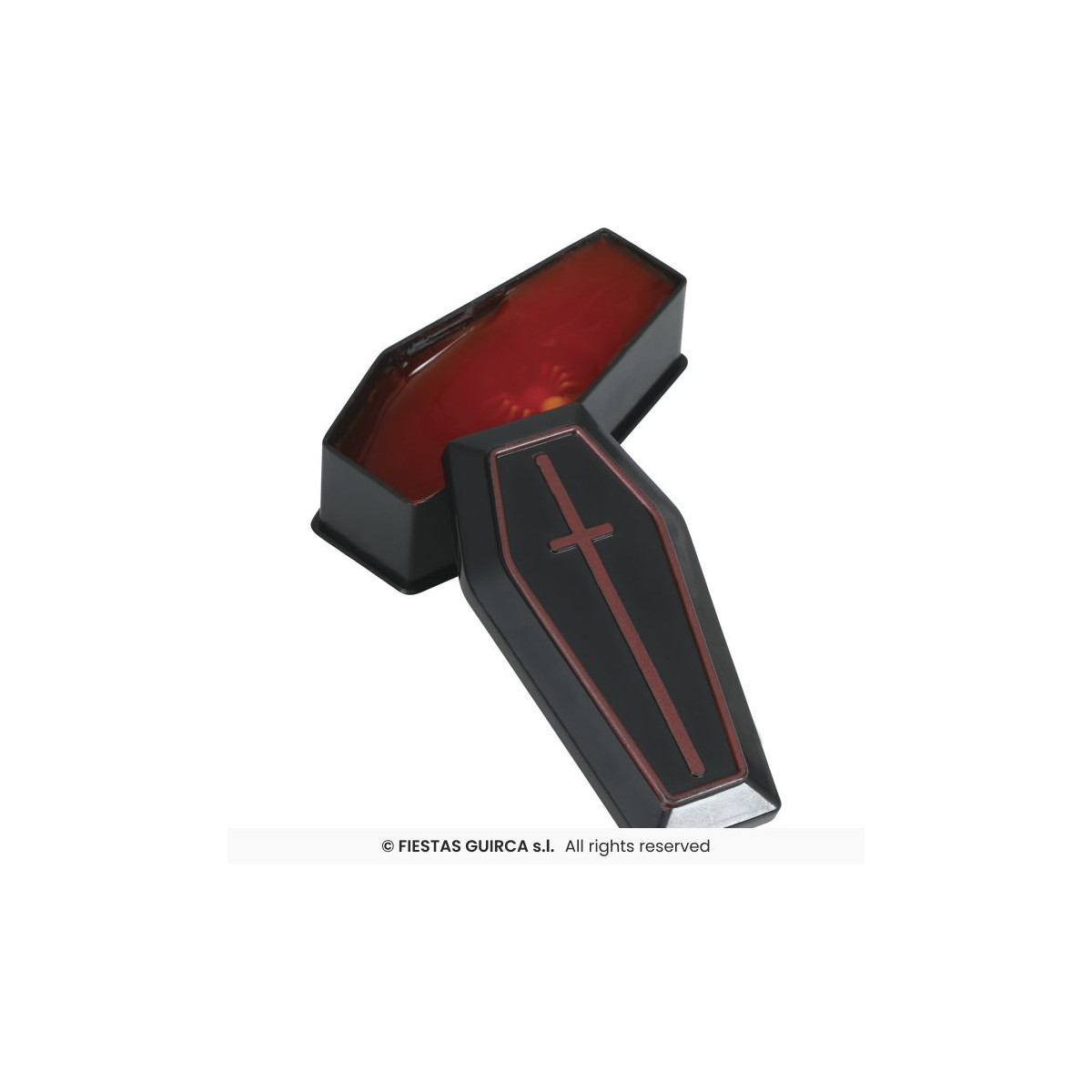 El Féretro con Gel es un complemento ideal para quienes buscan dar un toque macabro y divertido a sus celebraciones de Halloween. Este pequeño ataúd de plástico negro con tapa decorada con cruz esconde en su interior un gel rojo viscoso que simula sangre, creando un efecto sorprendente y realista que encantará a los amantes de lo terrorífico.
