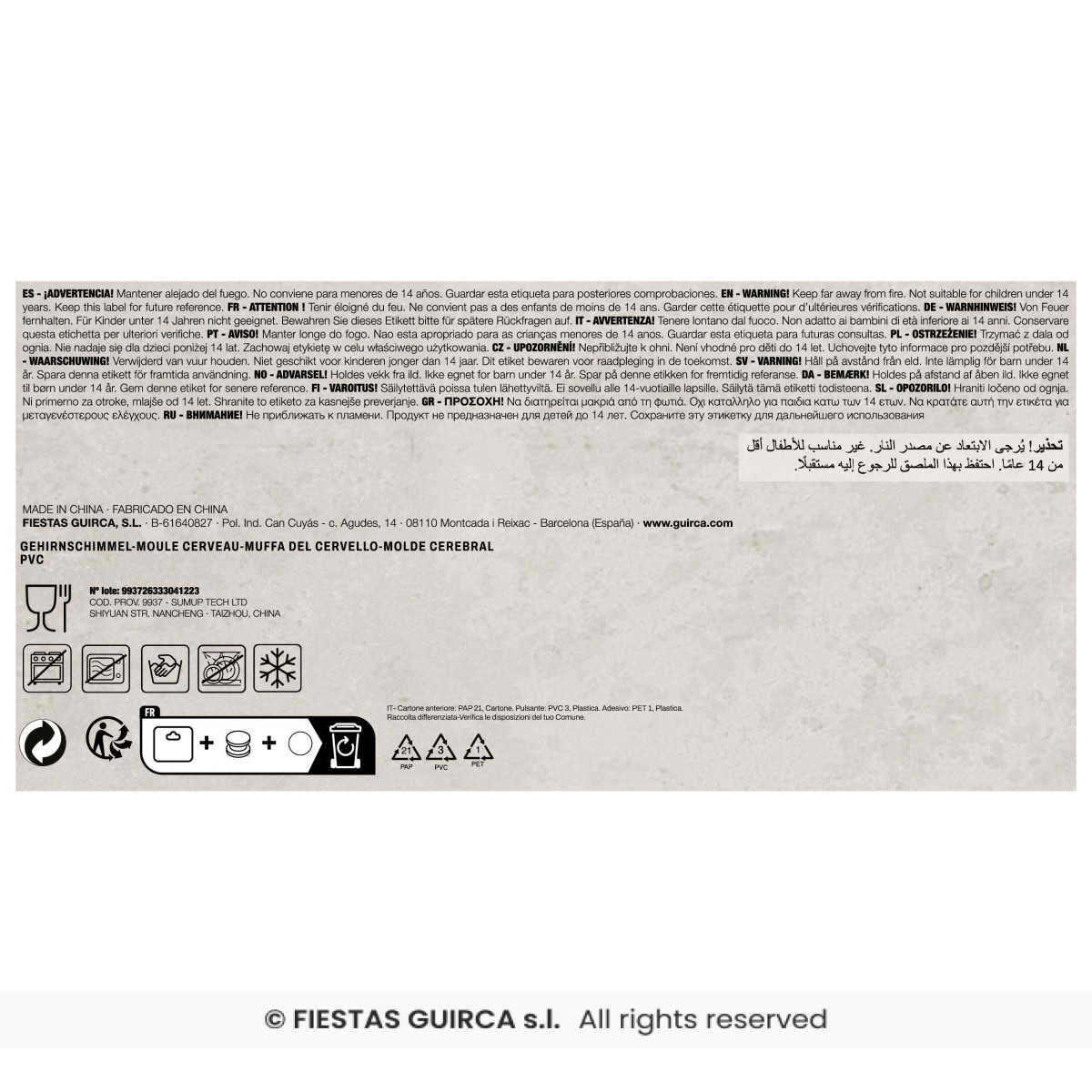 Fabricado en PVC apto para uso alimentario, este molde es ligero, resistente y fácil de usar. Su flexibilidad permite desmoldar de forma sencilla, evitando que la gelatina o la mezcla se rompan. Además, sus dimensiones de 22×18 cm lo hacen perfecto para preparar un postre de tamaño generoso, ideal para compartir entre familia y amistades. Puedes experimentar con diferentes colores y sabores de gelatina para conseguir efectos aún más realistas, como cerebros “sangrientos” con gelatina roja o versiones más divertidas en tonos verdes o morados.