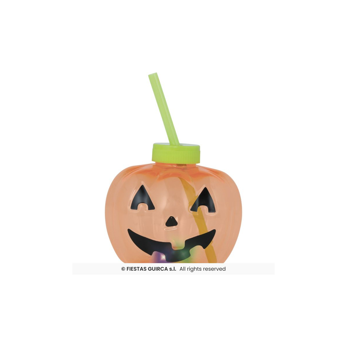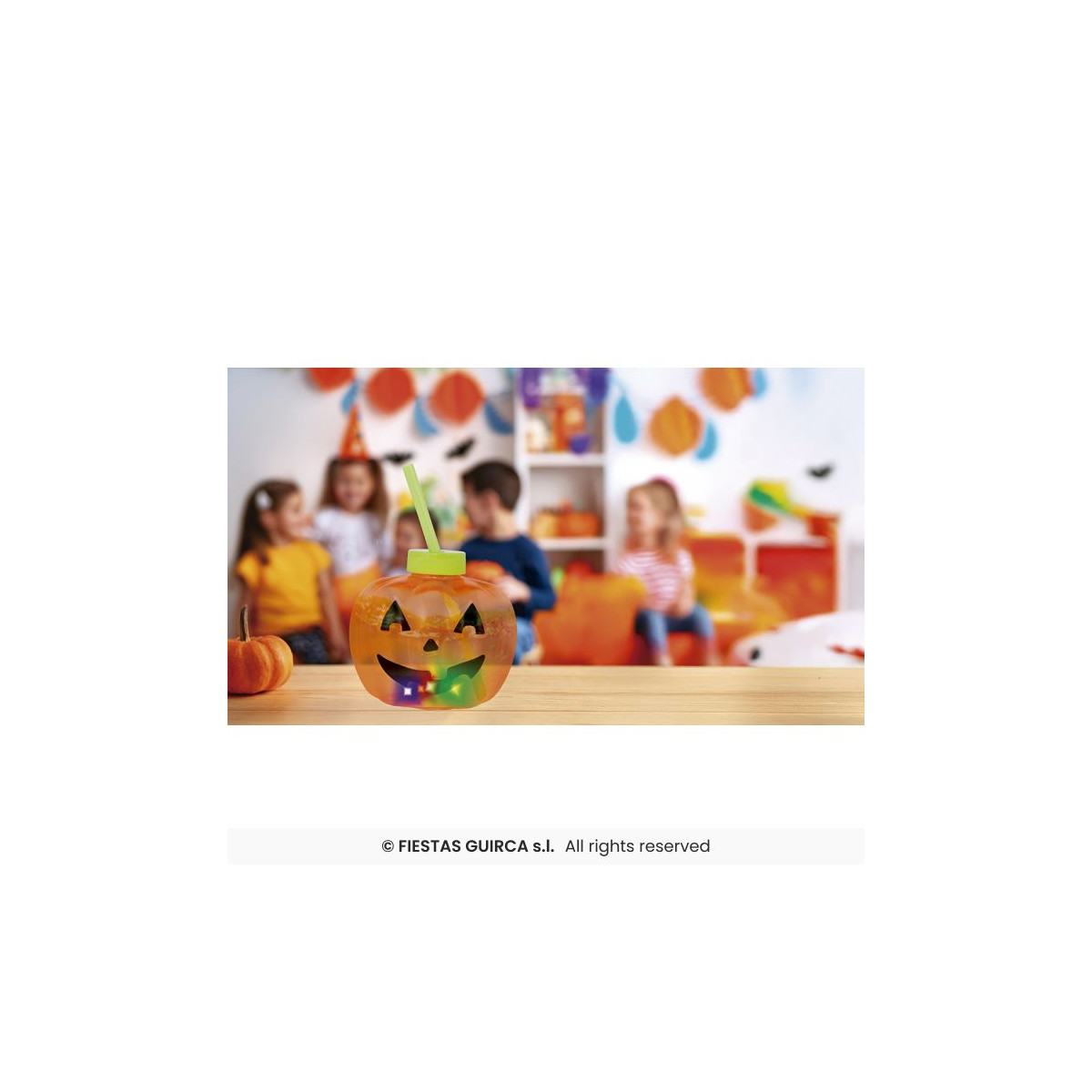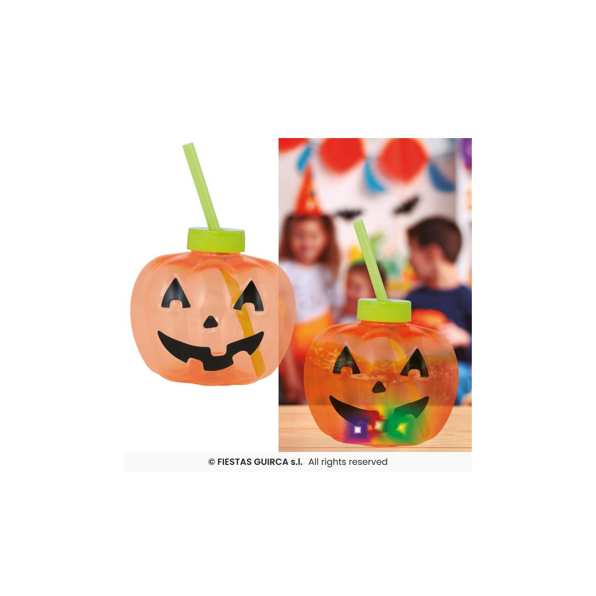 Vaso con pajita calabaza LED. Ideal para Halloween y fiestas. Reutilizable y divertido, ilumina tus bebidas con un toque mágico y original.