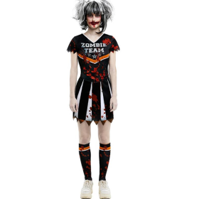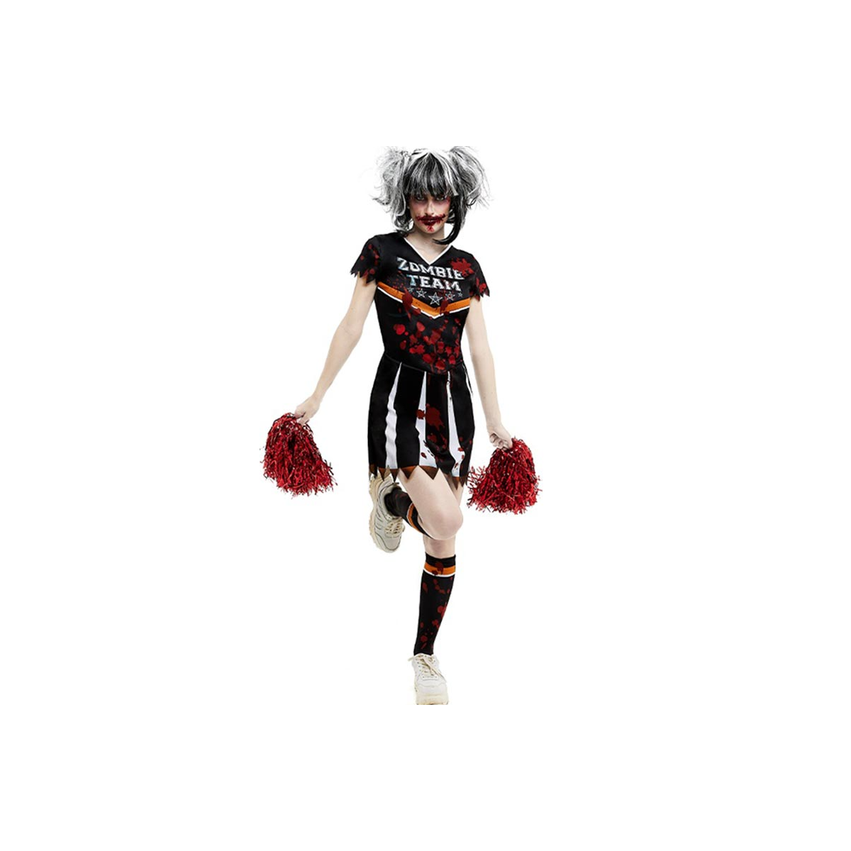 Descubre el Disfraz Animadora Zombie; con uniforme rasgado y actitud aterradora, lista para animar el horror en Halloween.