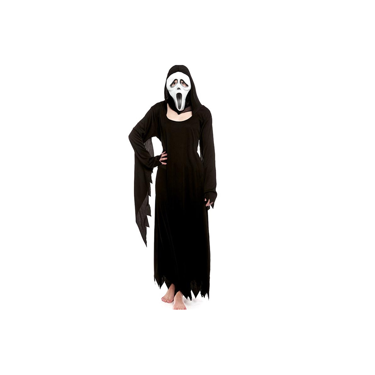 Descubre el Disfraz Asesina Scream; un vestido oscuro con personalidad contundente, diseñado para reinar con carácter en Halloween.