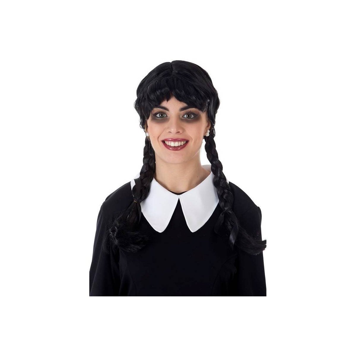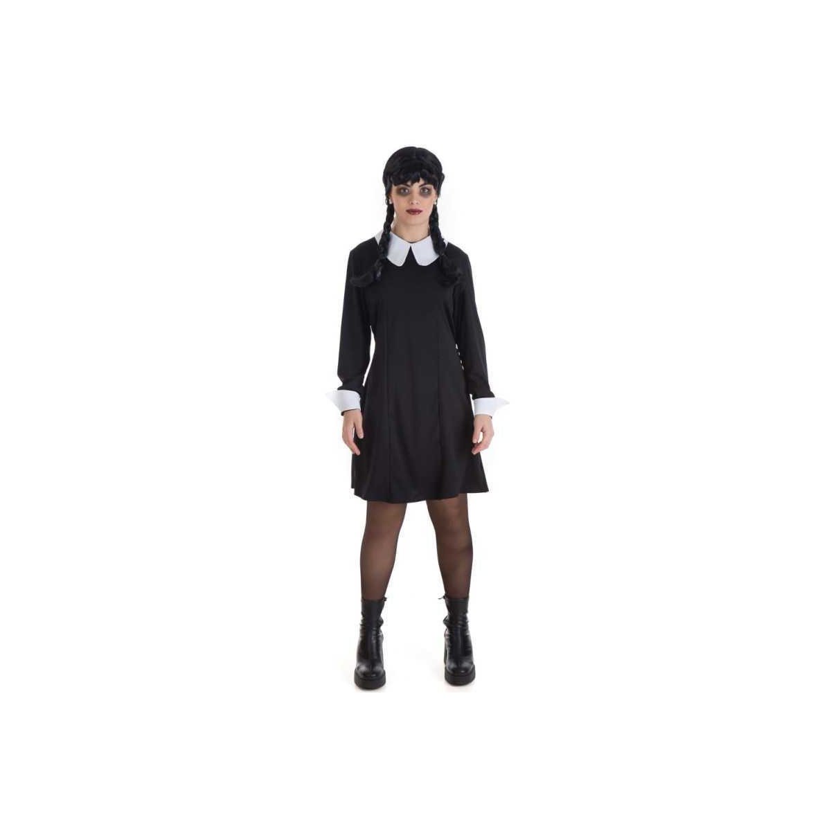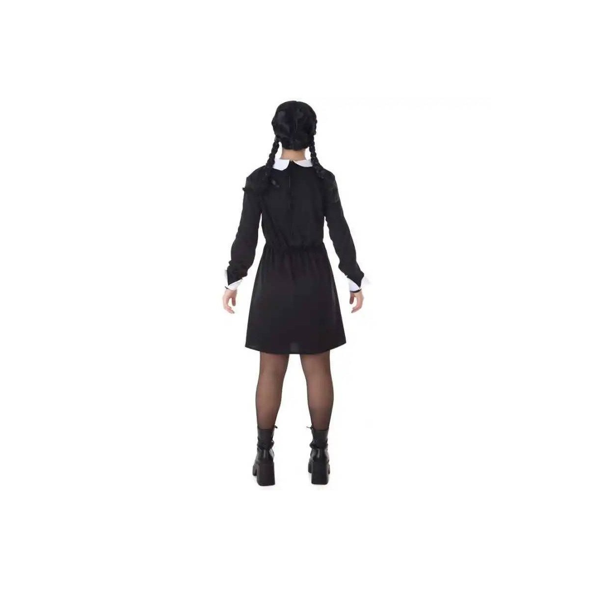 Disfraz de Adulto de Miércoles Addams Negro Talla S de Llopis para complementar como más te guste y lucirlo en la fiesta de Halloween.