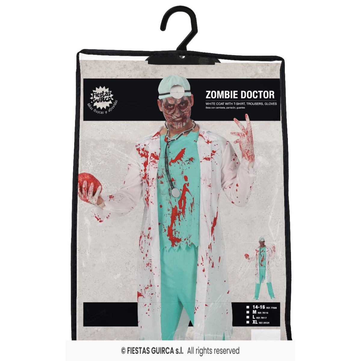 Descubre el Disfraz Doctor Zombie Adulto Talla L; mezcla lo médico y lo macabro para un look hospitalario inquietante en cualquier fiesta de Halloween.