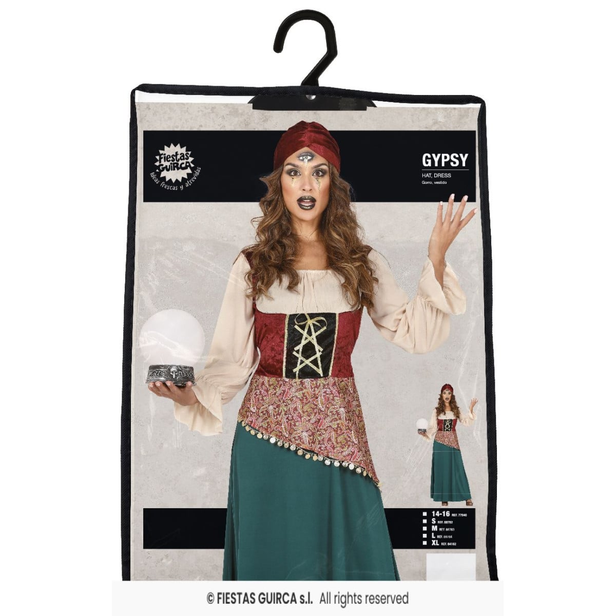 Con el Disfraz Medium talla M (38-40) podrás convertirte en la adivina más misteriosa y fascinante de Halloween. Este conjunto incluye un vestido largo con detalles bohemios y un pañuelo para la cabeza, logrando un look auténtico de médium capaz de dejar a todos intrigados. Su diseño combina tonos elegantes y estampados llamativos, evocando la estética mágica de las pitonisas.