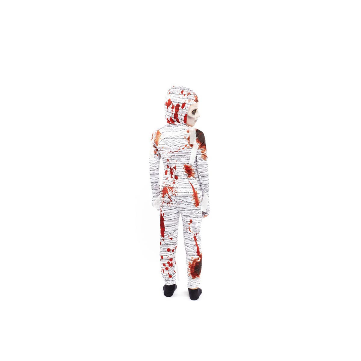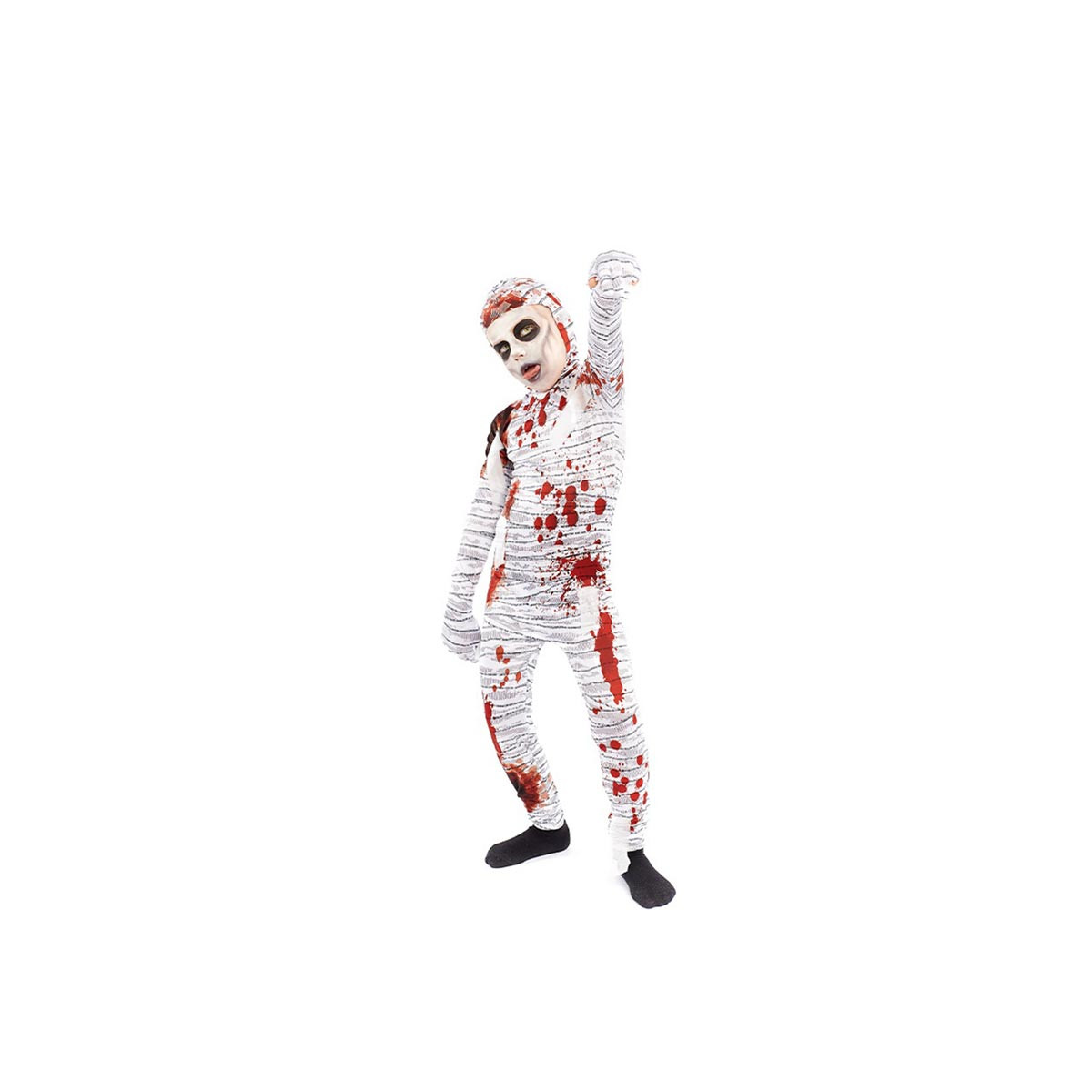 El disfraz de momia sangrienta para niño de 5-6 años incluye maillot, gorro y tiras de gasa. Perfecto para Halloween y fiestas de terror llenas de diversión.