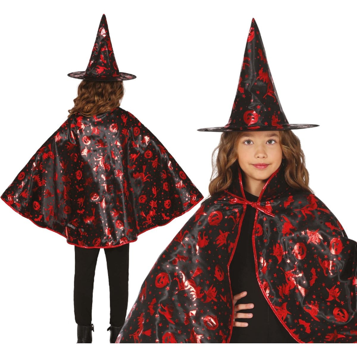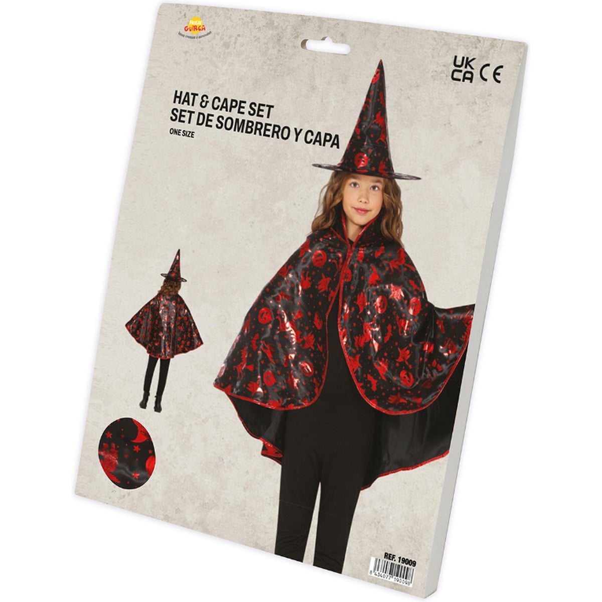 Completa el look de bruja o mago de tu peque@o con este sombrero y capa, perfectos para Halloween o cualquier fiesta de disfraces temáticos.