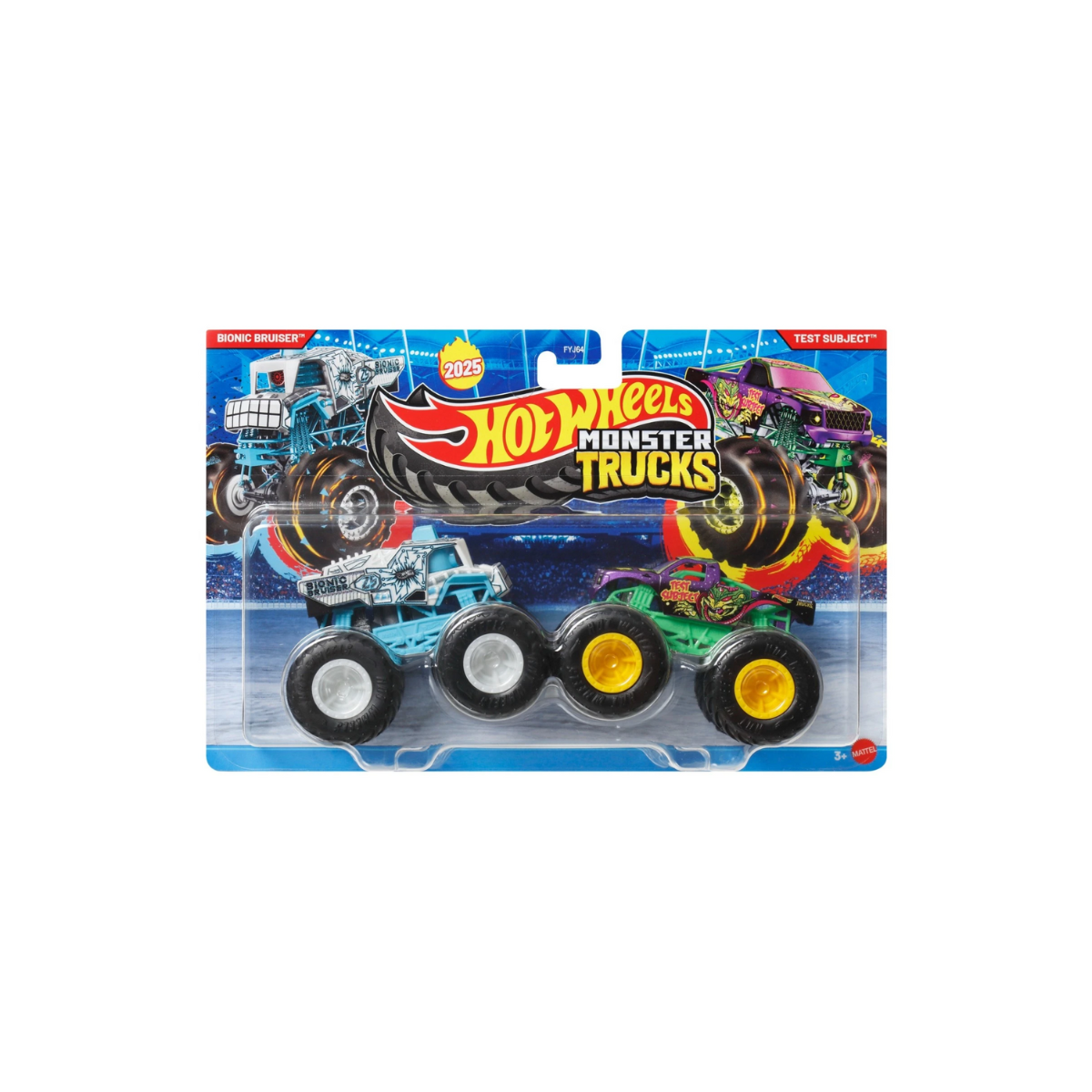 Estos packs de dos Monster Trucks a escala 1:64 incluyen dos vehículos de grandes ruedas preparados para cualquier ataque que consiga acabar con sus rivales.