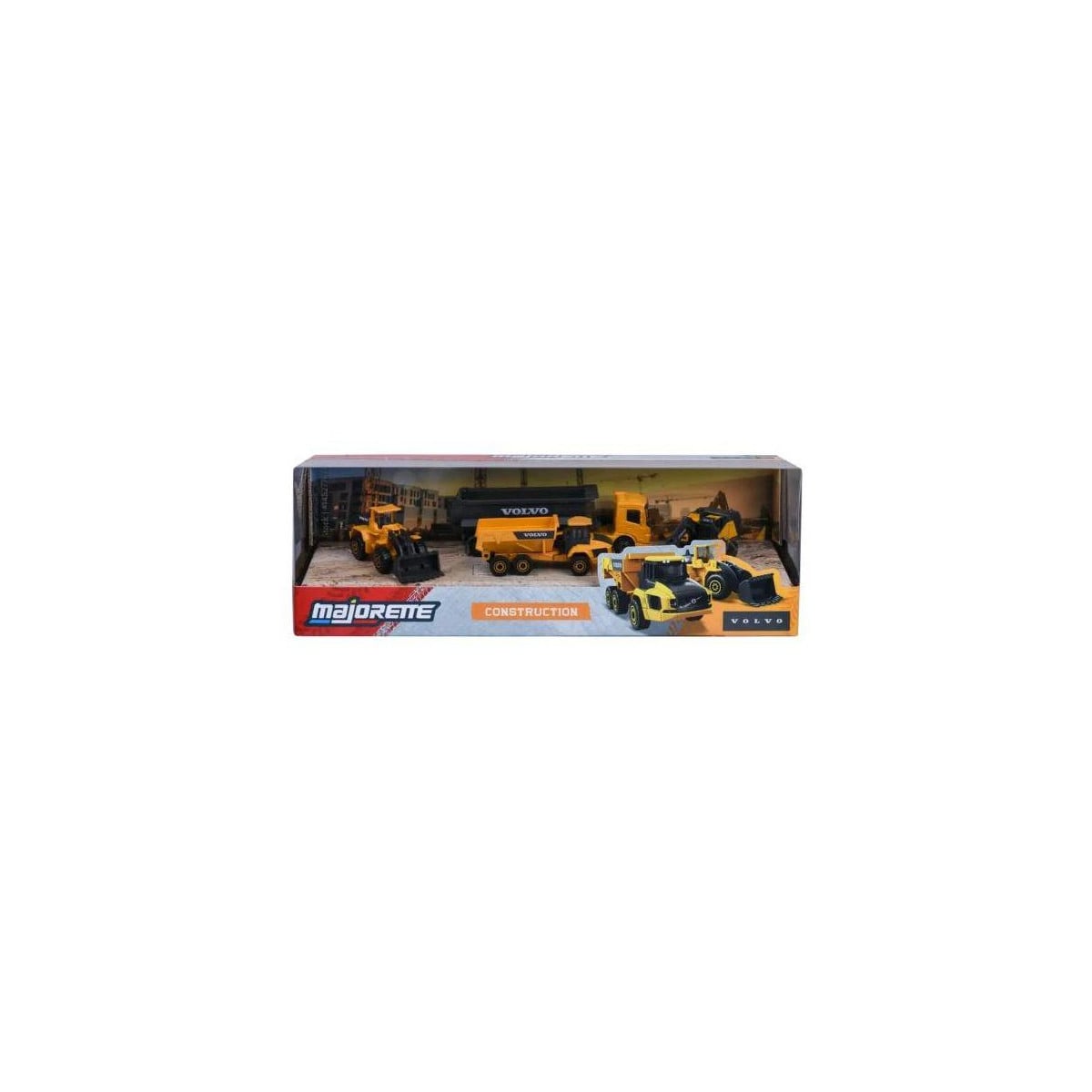 Set Majorette con vehículos de construcción Volvo de metal a escala 1:64. Máquinas realistas con ruedas libres y partes móviles para imaginar obras y aventuras.