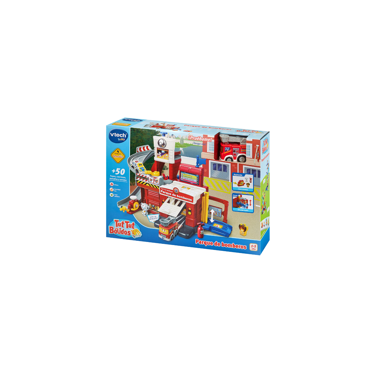 Incluye un camión de bomberos Tut Tut Bólidos con sonidos y frases educativas.