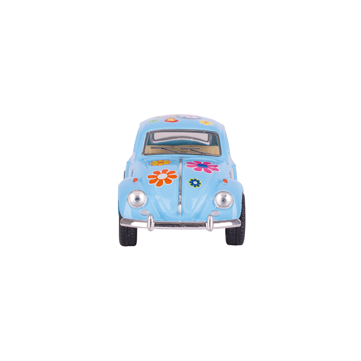 Coche Volkswagen Beetle 1967 a escala 1:32 con diseño Flower Power. Un suritdo de coches clásicos retro para jugar, coleccionar o regalar con estilo.