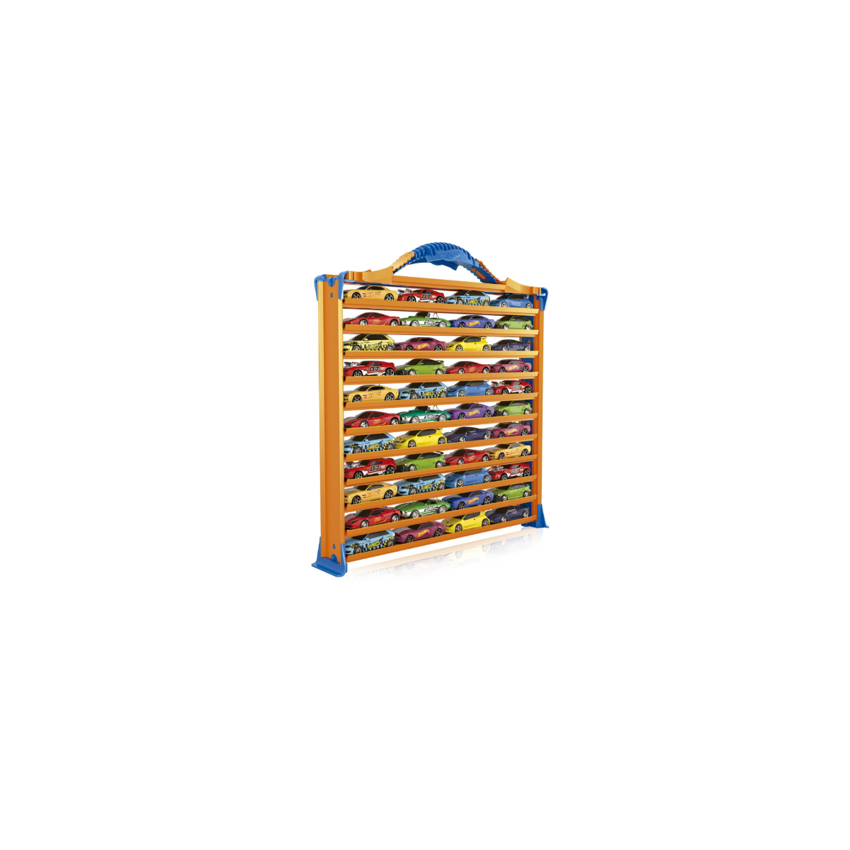 El Maletín Portacoches Hot Wheels 3 En 1 tiene capacidad para 44 coches Hot Wheels, lo que lo convierte en una opción ideal para mantener ordenada la colección en casa o llevarla a cualquier parte. Además, su diseño se despliega para revelar una pista doble con dos rampas de lanzamiento, lo que permite competir cara a cara y organizar carreras emocionantes en cualquier lugar.