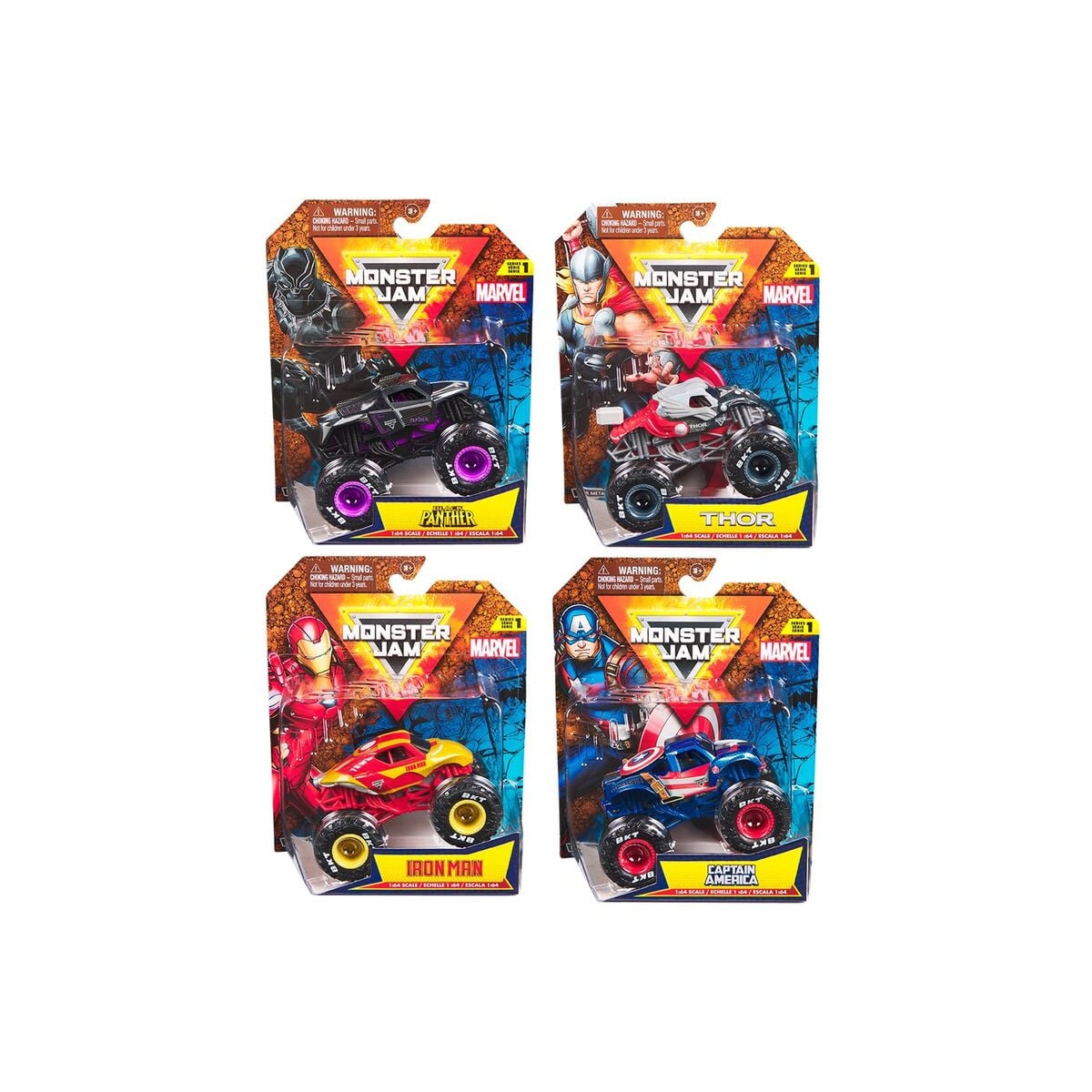Vehículo Monster Jam Marvel Surtido, los héroes de Marvel en formato monster truck. Con ruedas robustas y detalles únicos para aventuras intensas a partir de 3 años.