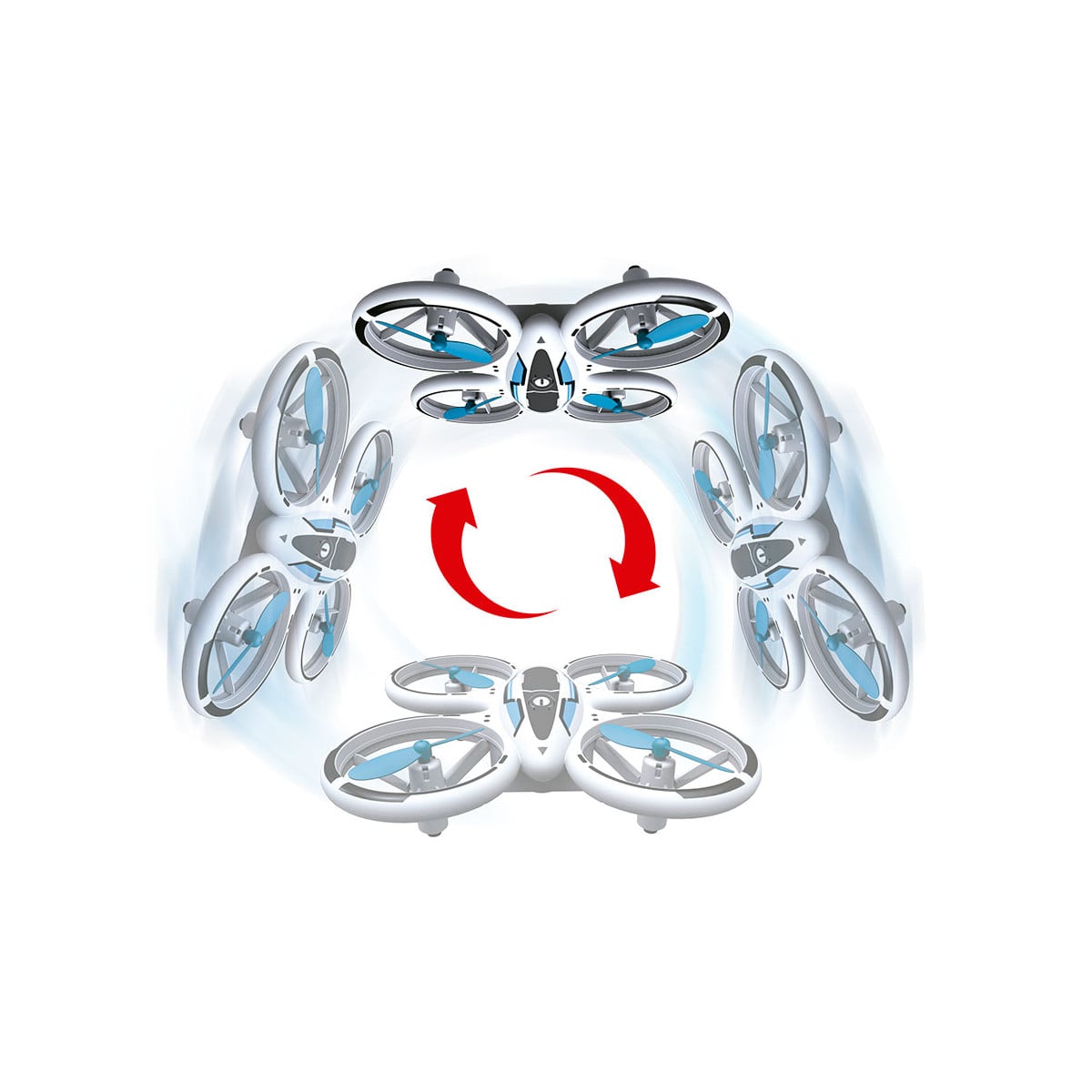 Una de sus funciones estrella es su capacidad de hacer giros de 360º, ¡pura adrenalina en el aire! Gracias a su mando ergonómico, permite maniobrar de forma sencilla, estable y fluida, incluso para principiantes. Además, su estructura ligera pero resistente está pensada para soportar esos aterrizajes más intensos que siempre forman parte de la diversión.